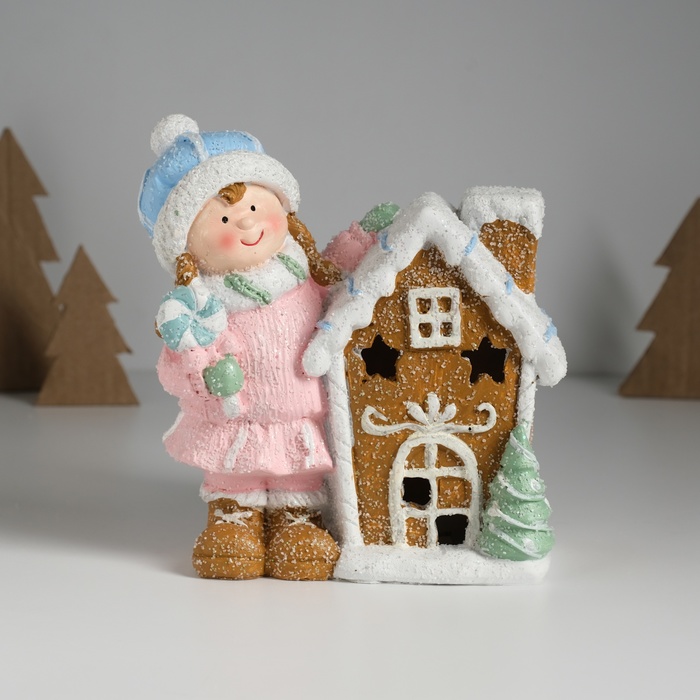 Эта светящаяся керамическая фигурка создаёт в доме атмосферу зимней сказки. Нежная девочка в розовом платье у пряничного домика с тёплым свечением станет сердцем новогоднего декора, даря ощущение чуда и уюта каждому вечеру.