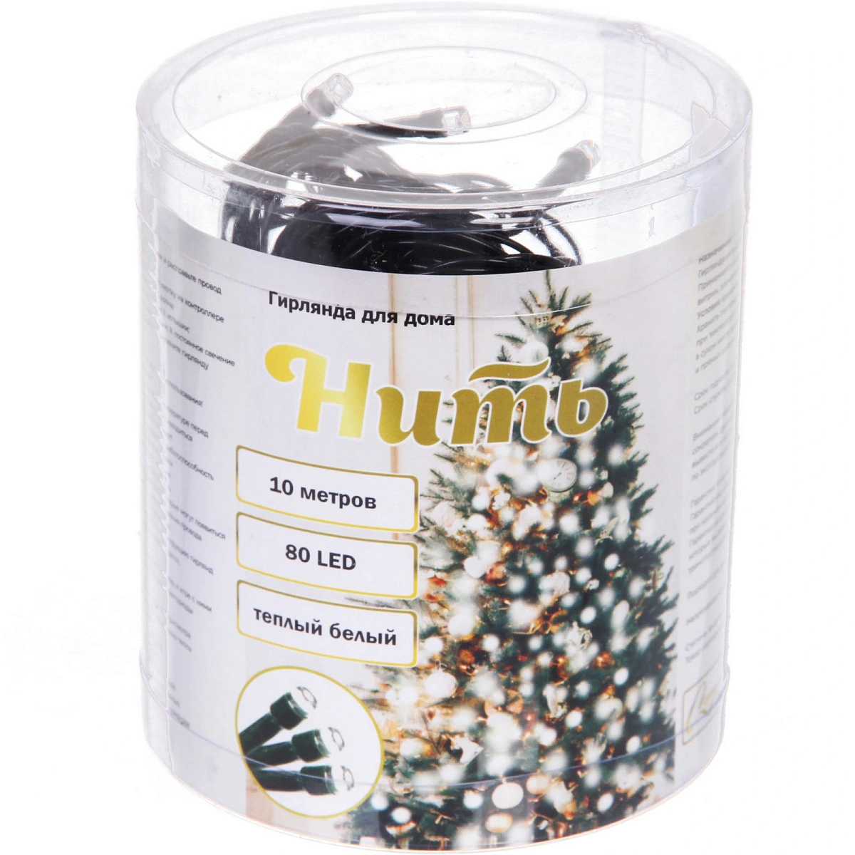 Гирлянда для дома НИТЬ 10 м 80 ламп LED черный пров.,8 реж, IP-20, Теплый белый