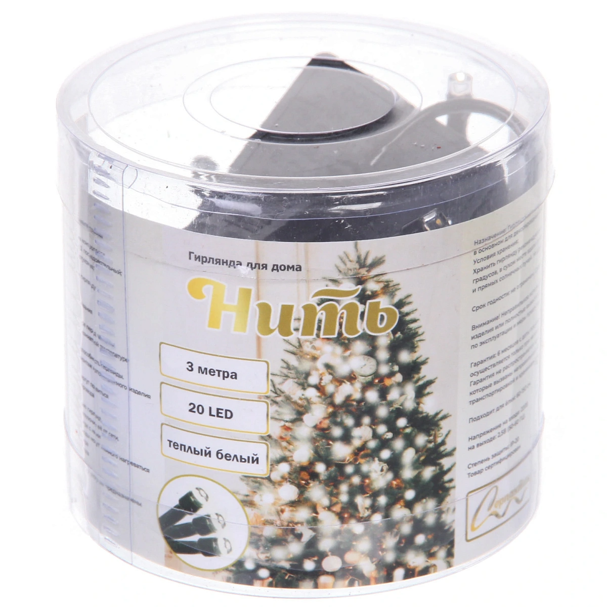 Гирлянда для дома НИТЬ 3 м 20 ламп LED черный пров.,8 реж, IP-20, Теплый белый