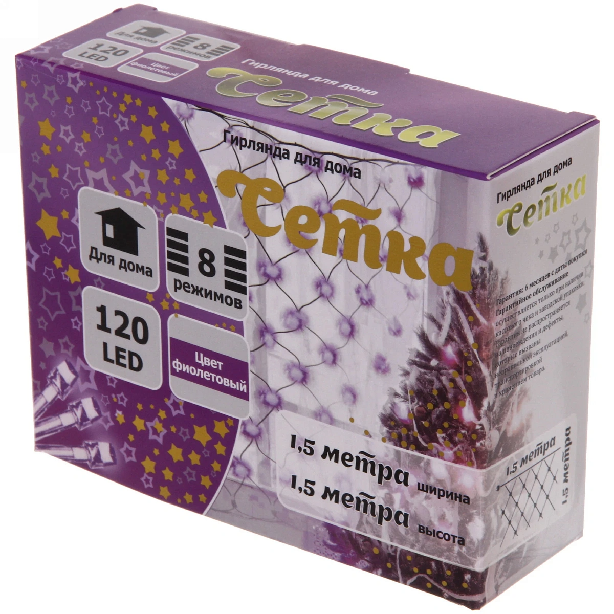 Гирлянда для дома СЕТКА ш1,5* в1,5м 120 ламп LED, прозр.пров.,8 реж, IP-20, Фиолетовый
