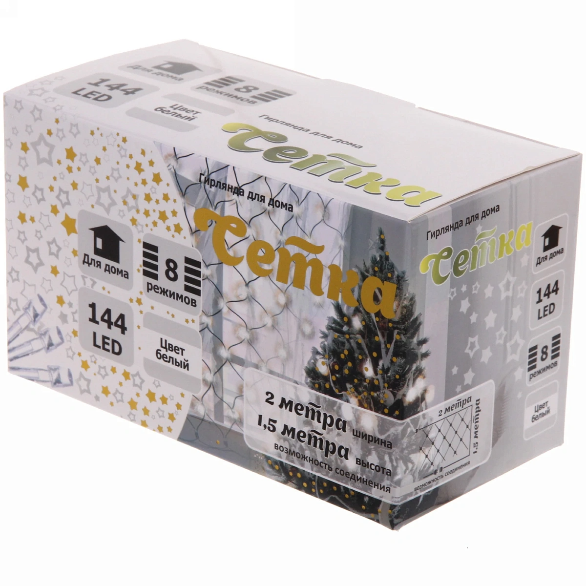 Гирлянда для дома СЕТКА ш2,0* в1,5м 144 лампы LED прозр.пров.,8 реж, IP-20, Белый (возможность соединения)