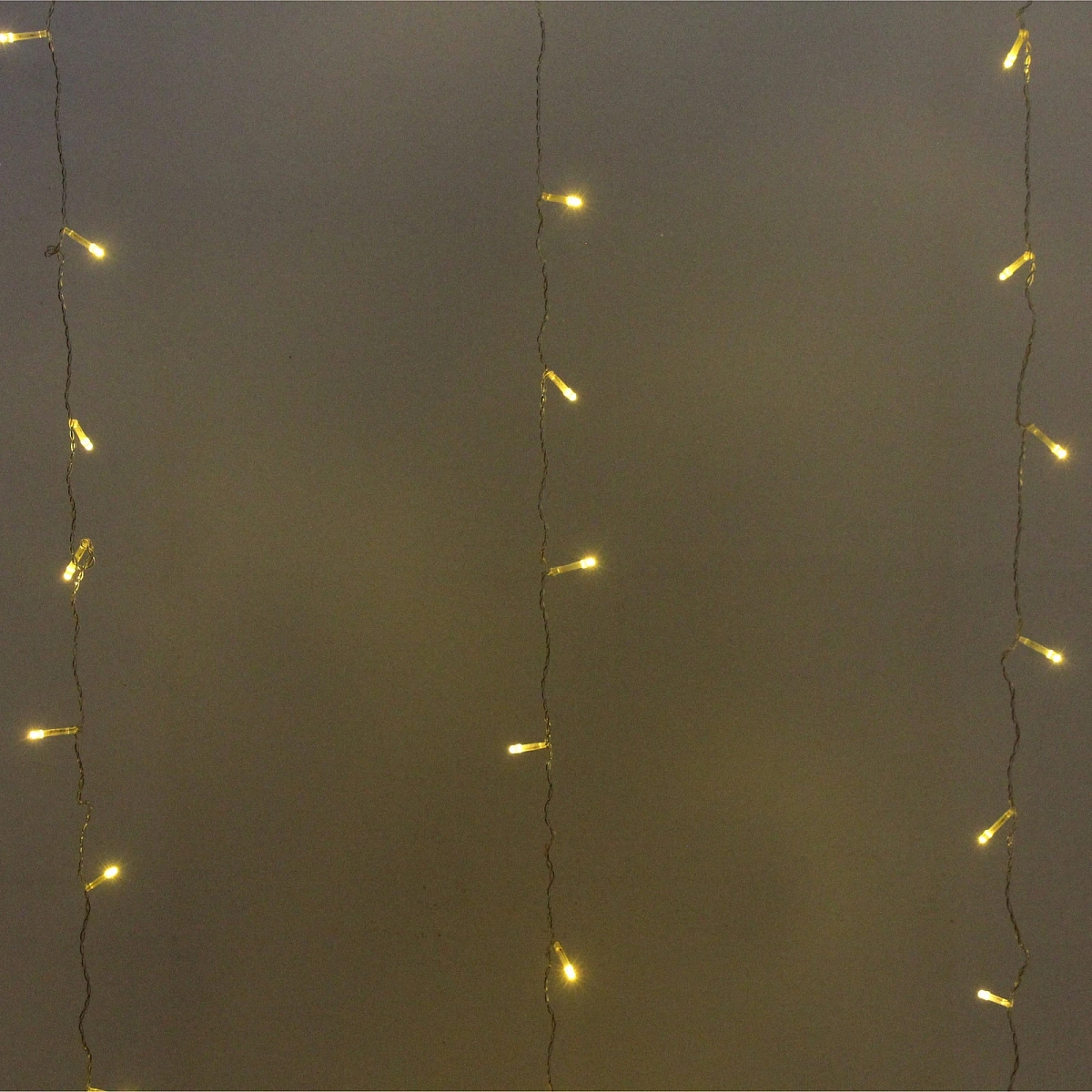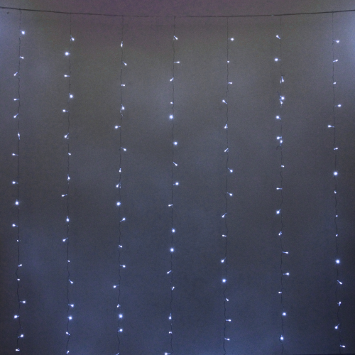 Гирлянда д/дома ЗАНАВЕС 3м*2,5м 240ламп LED, прозр.провод, 8реж.,IP-20. Теплый белый