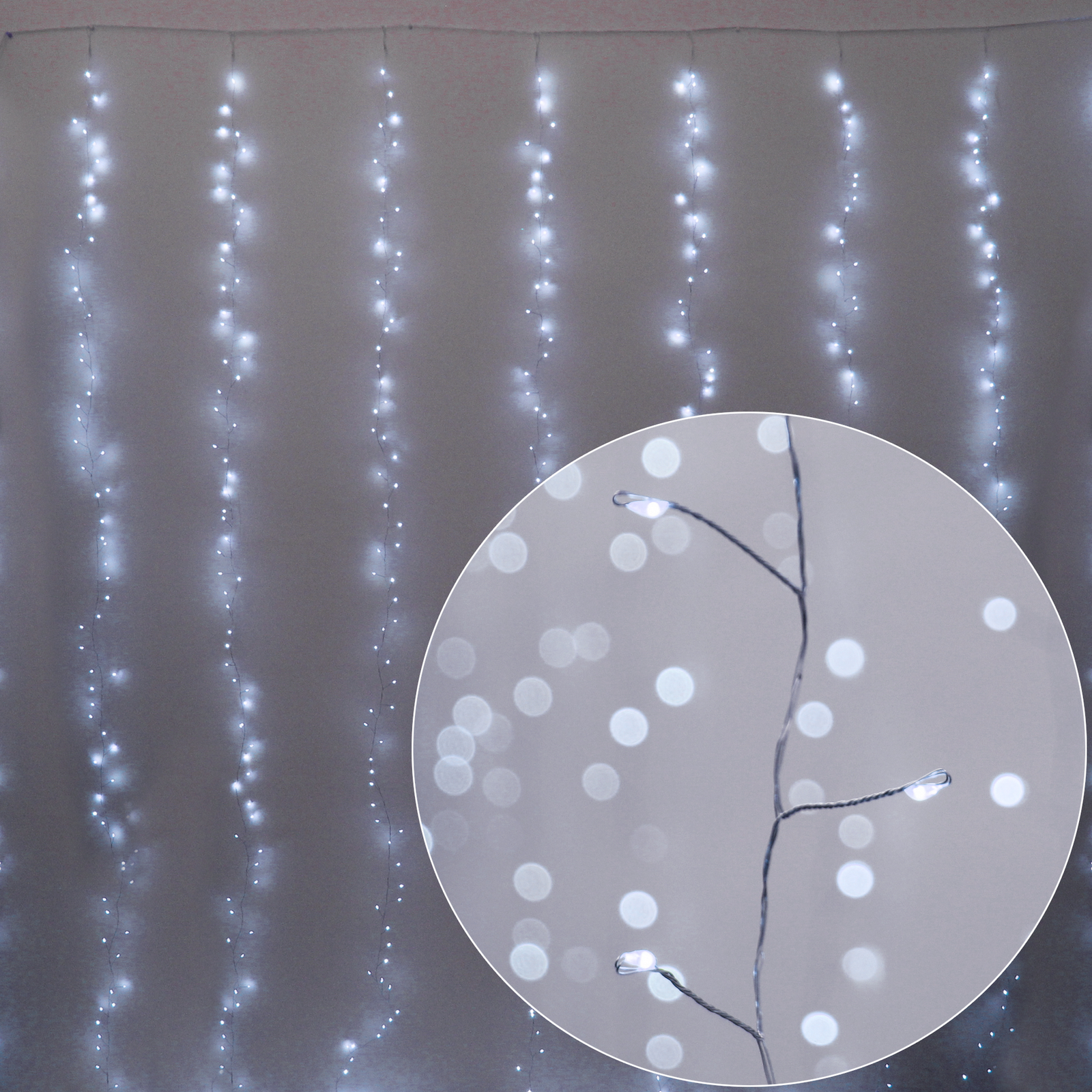 Гирлянда для дома ЗАНАВЕС 3м*3м 900 ламп LED "Мишура", IP-20, 8 режимов. Белый (возможность соединения)