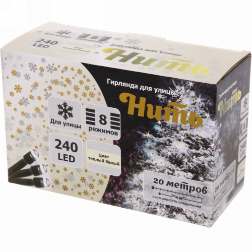 Гирлянда для улицы 20м 240 ламп LED чёрный провод, 8 реж, IP-54, Синий (возможность соединения)