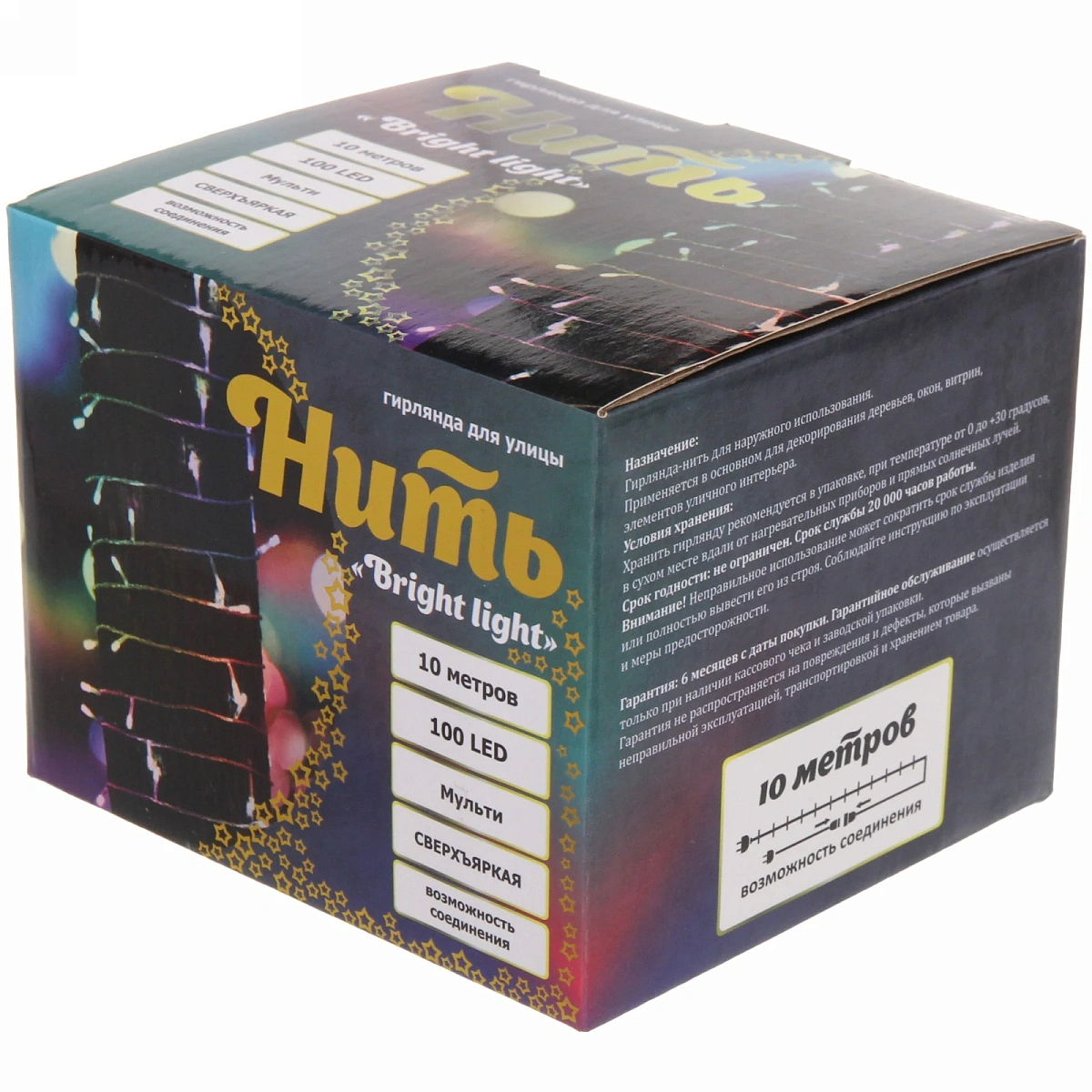 Гирлянда для улицы "Bright light" 10 м 100 ламп LED прозрач.пров.,8 реж, IP-54, Мультицвет (возможность соединения)