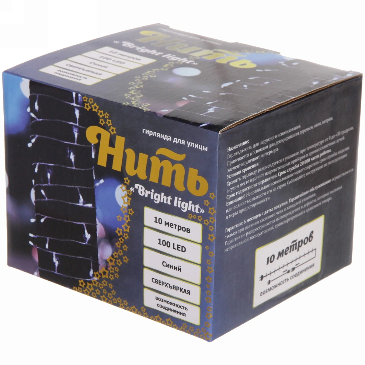Гирлянда для улицы "Bright light" 10 м 100 ламп LED прозрач.пров.,8 реж, IP-54, Синий (возможность соединения)