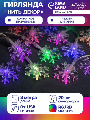 Гирлянда «Нить» 2.5 м, IP20, прозрачная нить, 25 LED, свечение мульти, фиксинг, 220 В
