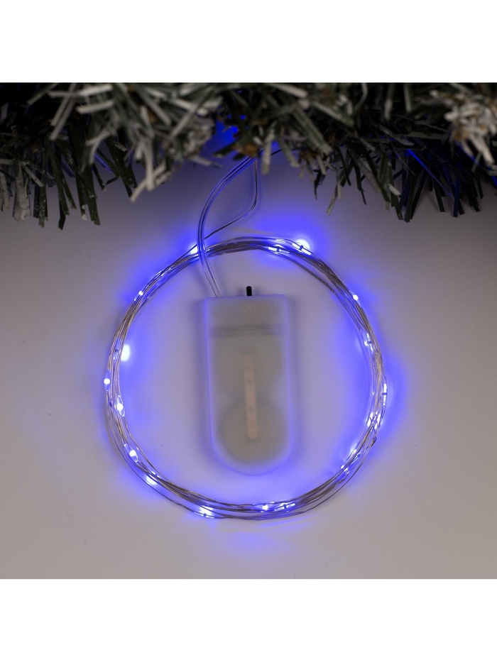 Гирлянда «Нить» 2 м роса, IP20, серебристая нить, 20 LED, батарейки CR2032×2 (в комплекте), свечение синее