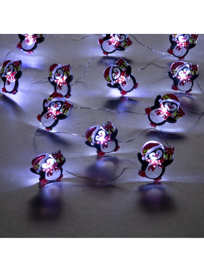 Гирлянда «Нить» 2 м роса с насадками «Пингвин», IP20, серебристая нить, 20 LED, 2 режима, батарейки ААх2 (нет в комплекте), свечение белое