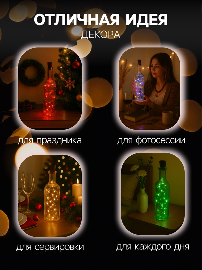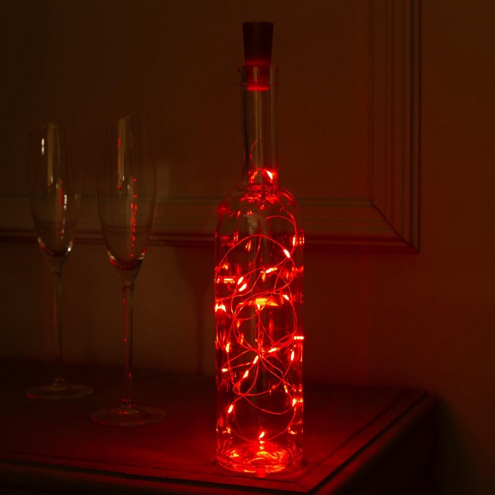 Гирлянда «Нить» 2 м роса с пробкой, IP20, серебристая нить, 20 LED, свечение красное, LR44×3
