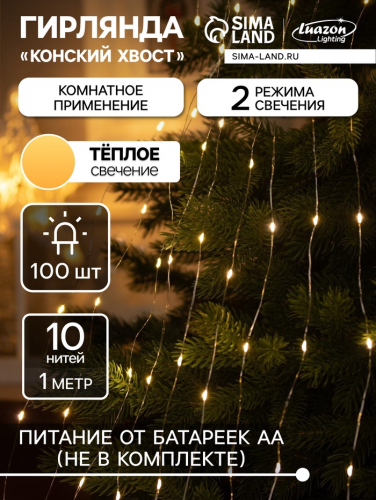 Гирлянда «Нить» 20 м, IP20, прозрачная нить, 200 LED, 8 режимов, 220 В, свечение синее