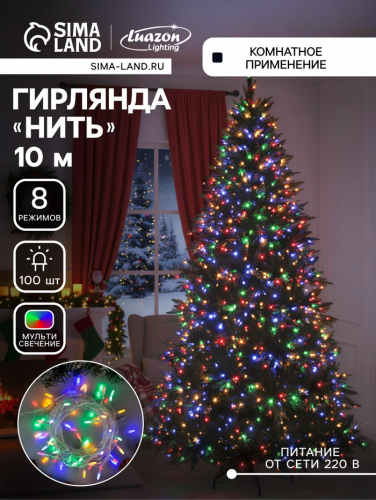 Гирлянда «Нить» 20 м роса, IP20, серебристая нить, 200 LED, свечение тёплое белое, 12 В