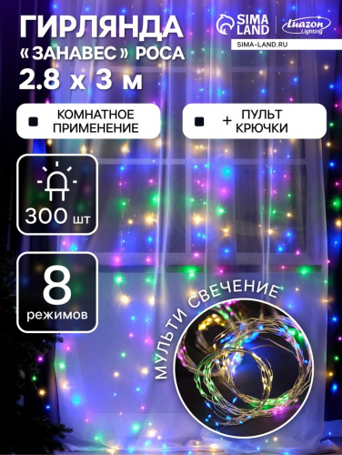 Гирлянда «Нить» 5 м, IP20, прозрачная нить, 50 LED, 8 режимов, 220 В, свечение мульти