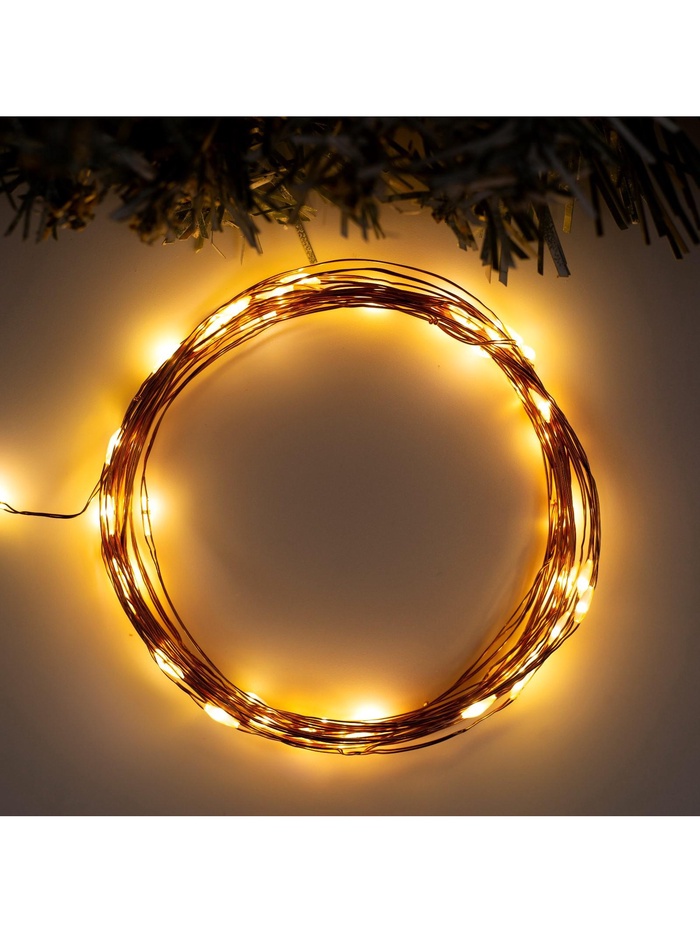 Гирлянда «Нить» 5 м роса, IP20, медная нить, 50 LED, свечение тёплое белое, 2 режима, AAх3