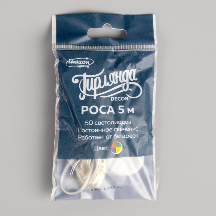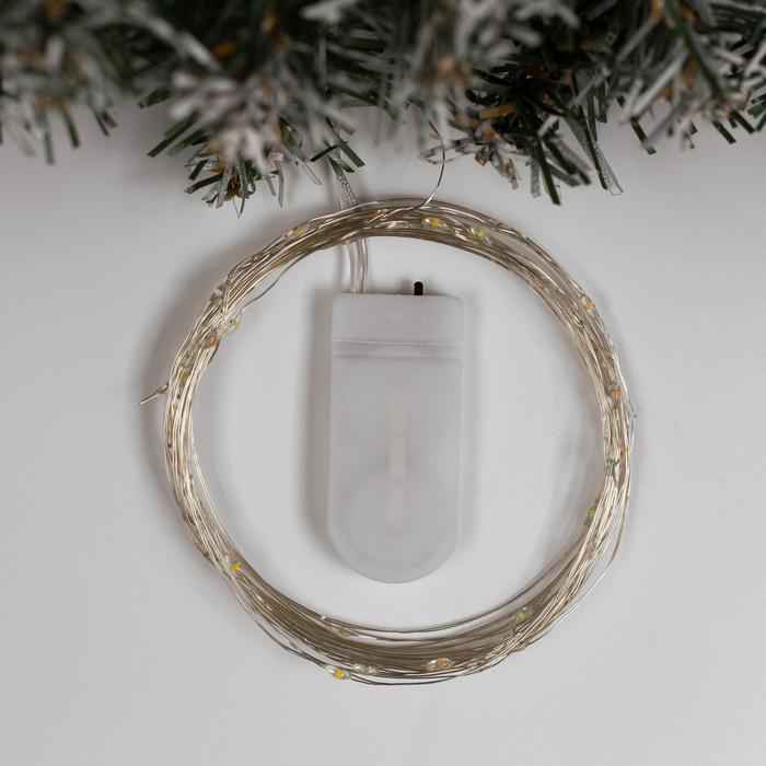 Гирлянда «Нить» 5 м роса, IP20, серебристая нить, 50 LED, батарейки CR2032×2 (в комплекте), свечение мульти