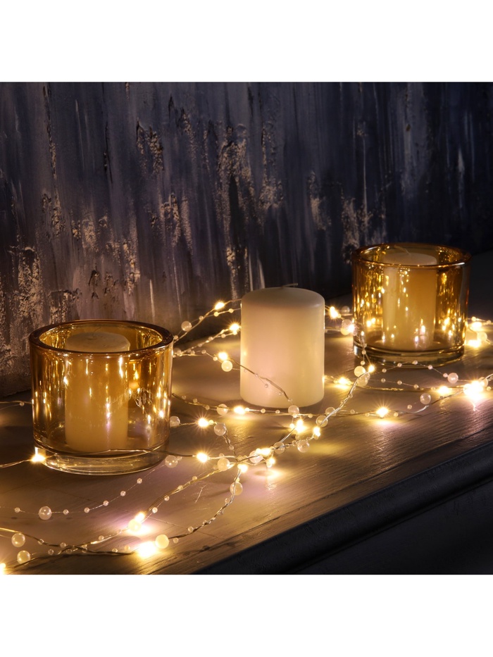Гирлянда «Нить» 5 м роса с насадками «Перламутр», IP20, нить серебристая, 50 LED, батарейки AAx2 (не в комплекте), 2 режима, свечение тёплое белое