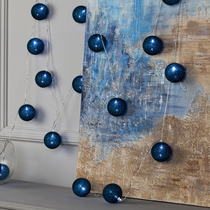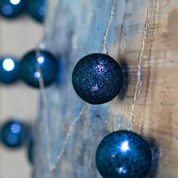 Гирлянда «Нить» 5 м с насадками «Клубки изумрудные», IP20, прозрачная нить, 20 LED, свечение белое, 220 В