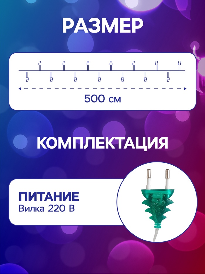 Гирлянда «Нить» 5 м с насадками «Шарики льда», IP20, прозрачная нить, 20 LED, свечение мульти (RG/RB), мигание, 220 В
