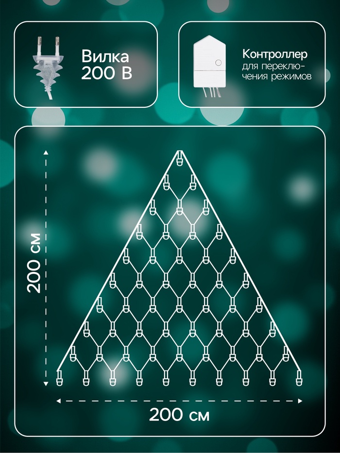 Гирлянда «Сеть-ёлка» 2×2 м, IP20, тёмная нить, 152 LED, свечение мульти, 8 режимов, 220 В