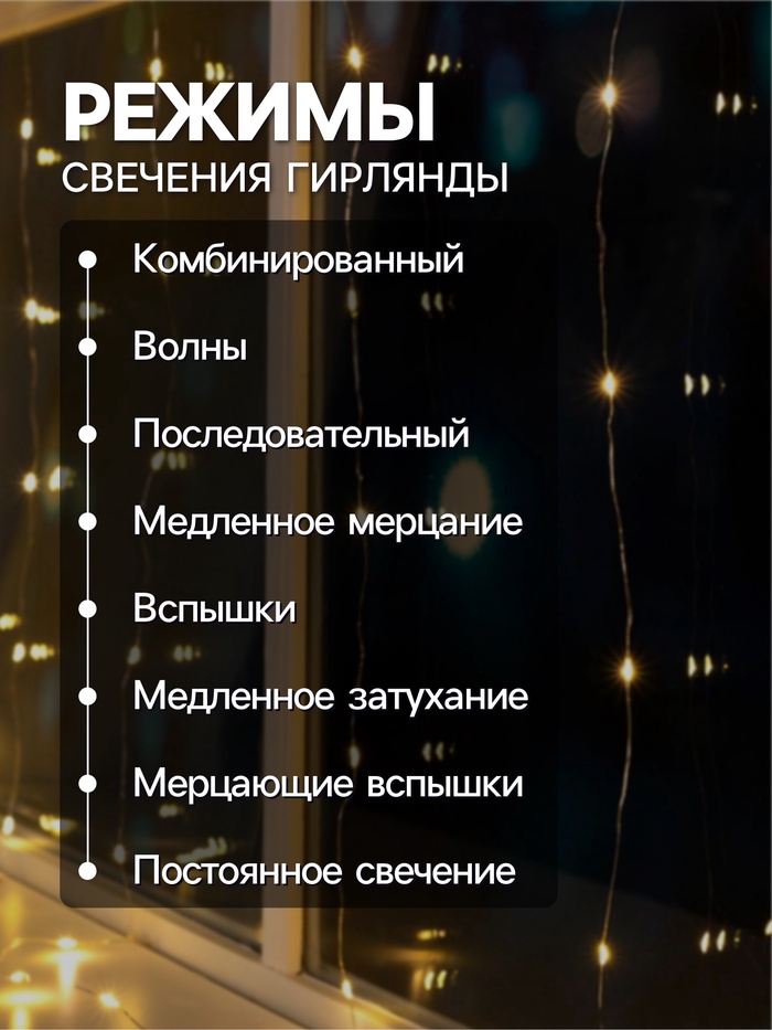 Гирлянда «Занавес» 1.6×1.6 м роса, IP20, серебристая нить, 160 LED, свечение тёплое белое, 8 режимов, 220 В