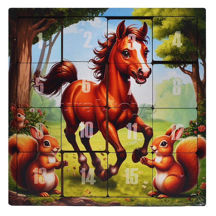 Головоломка Пятнашки "Жеребёнок с белочками"