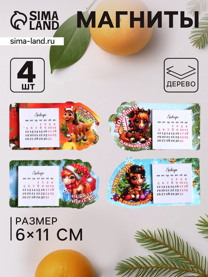 Набор магнитов на холодильник с календарём «Лошадь. Новый год 2026», 4 шт., 6×11 см