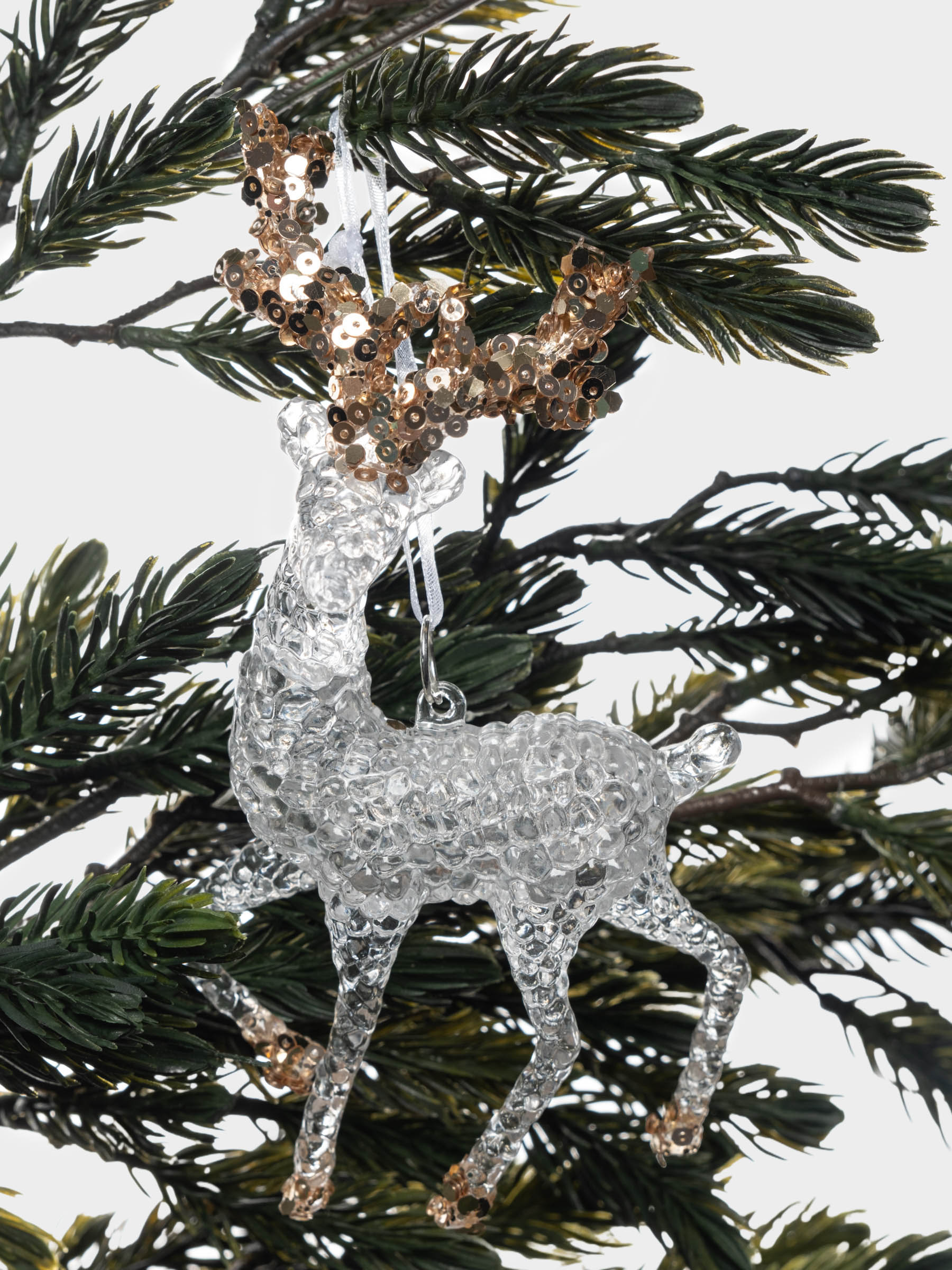 Игрушка елочная, 14 см, акрил, прозрачно-золотистая, Олень, Event