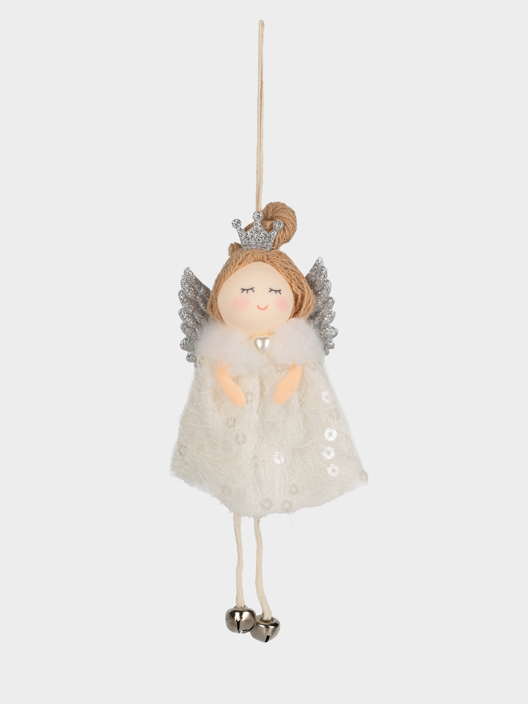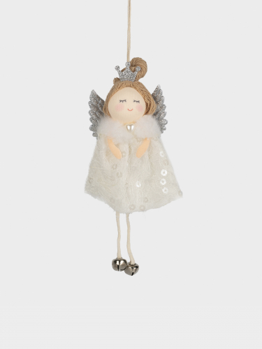 Игрушка елочная, 16 см, пенопласт/полиэстер, серебристая, Ангел, New year