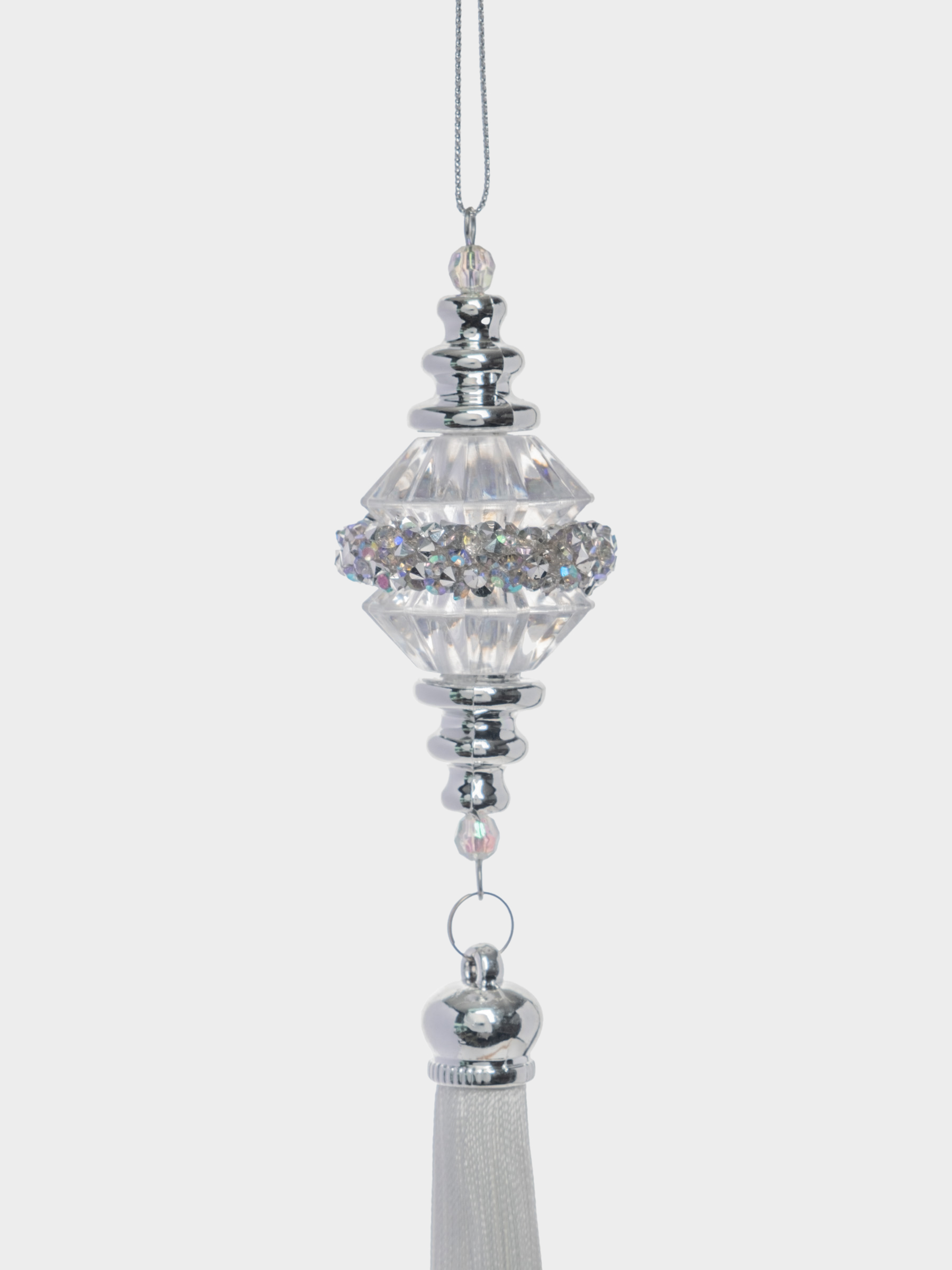 Игрушка елочная, 17 см, пластик/полиэстер, серебристая, Кристалл с кистью, Event