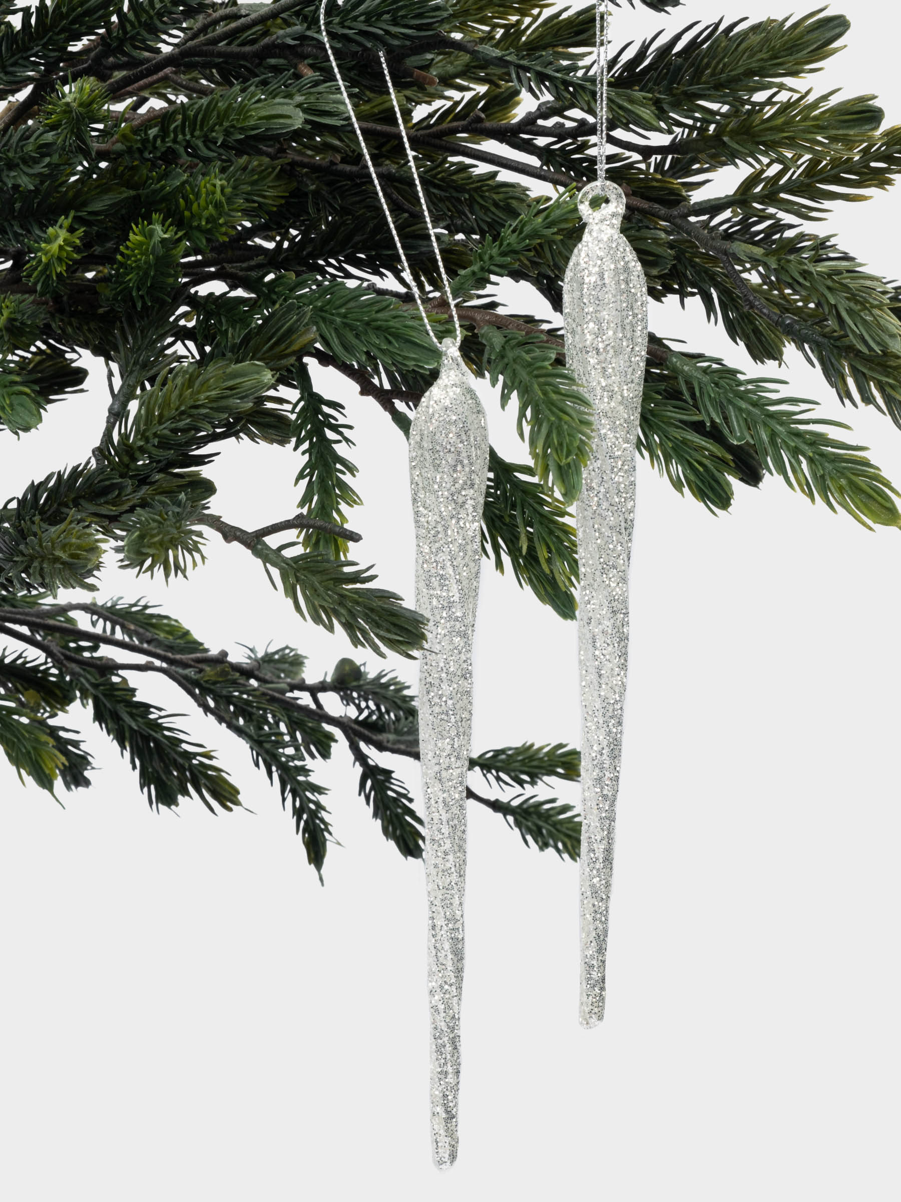 Игрушка елочная, 2 штуки. Размер: 20 см. Материал: стекло, блестки. Рекомендации по уходу: протирать мягкой сухой тканью. Беречь от механических повреждений. 472