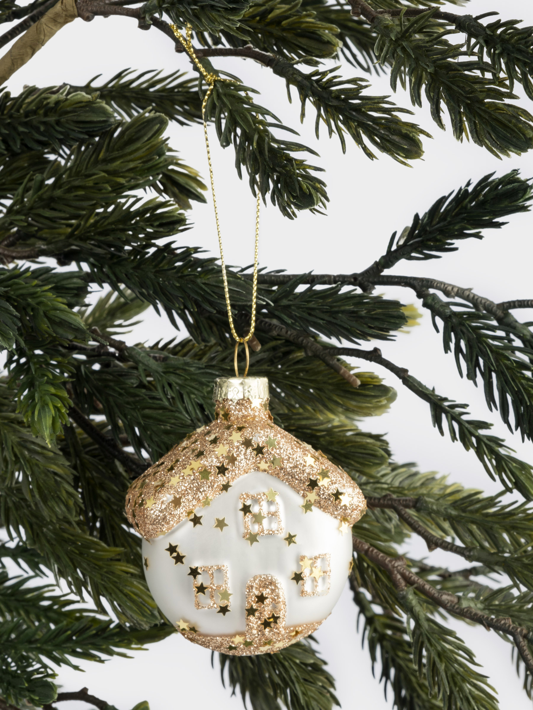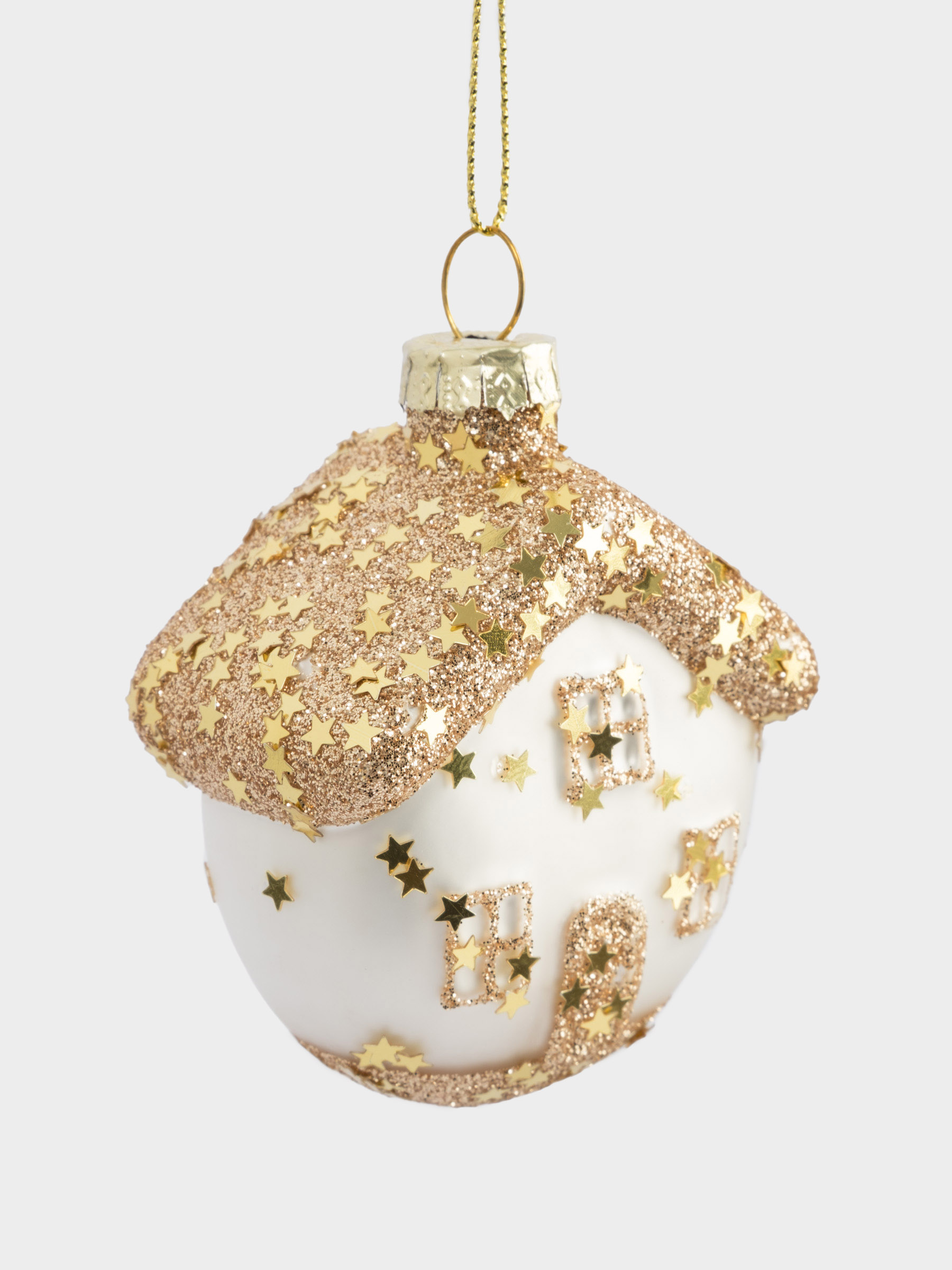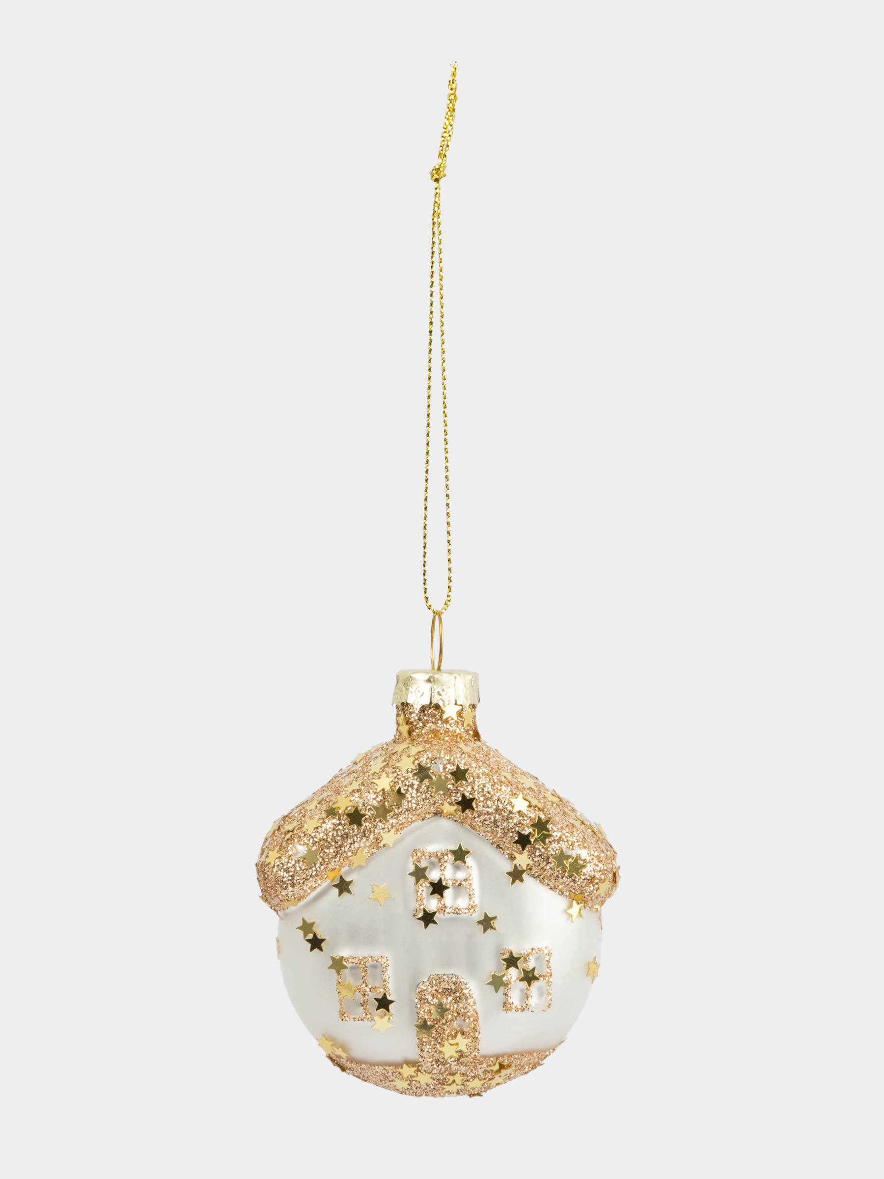 Игрушка елочная, 4х6 см, стекло, золотистая, Домик, New year