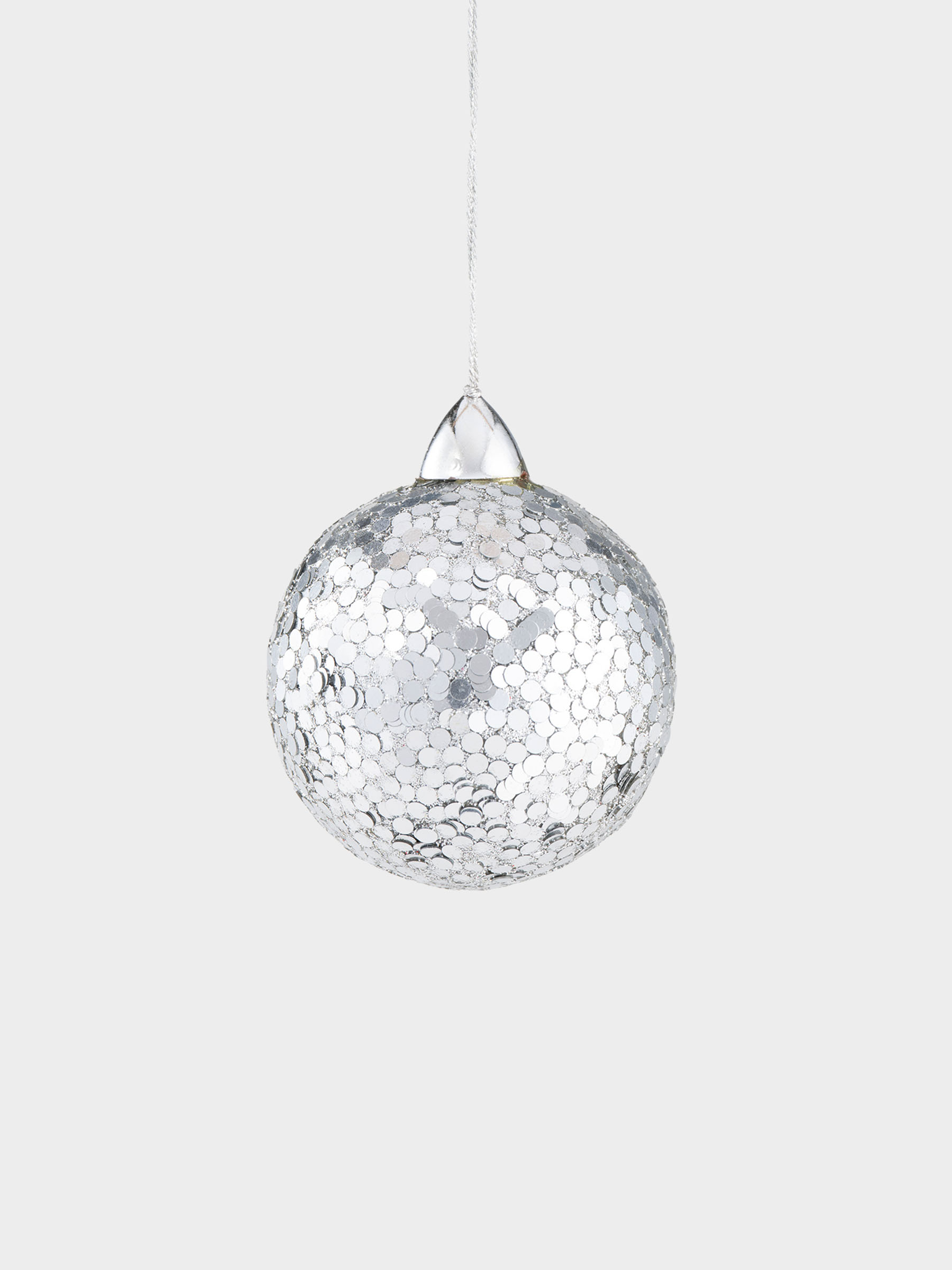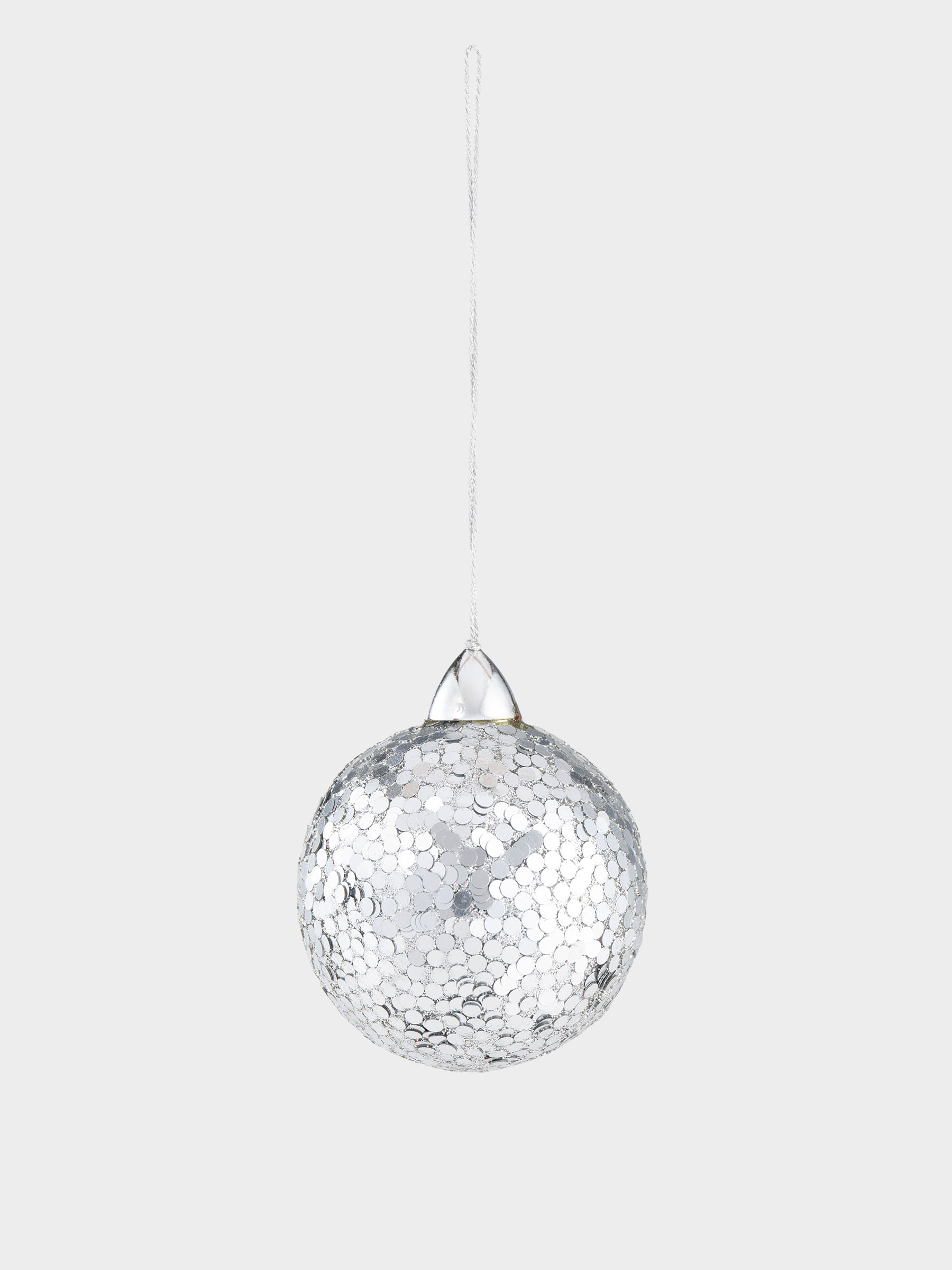 Игрушка елочная, 6 см, пластик/пайетки, серебристая, Шар, New year