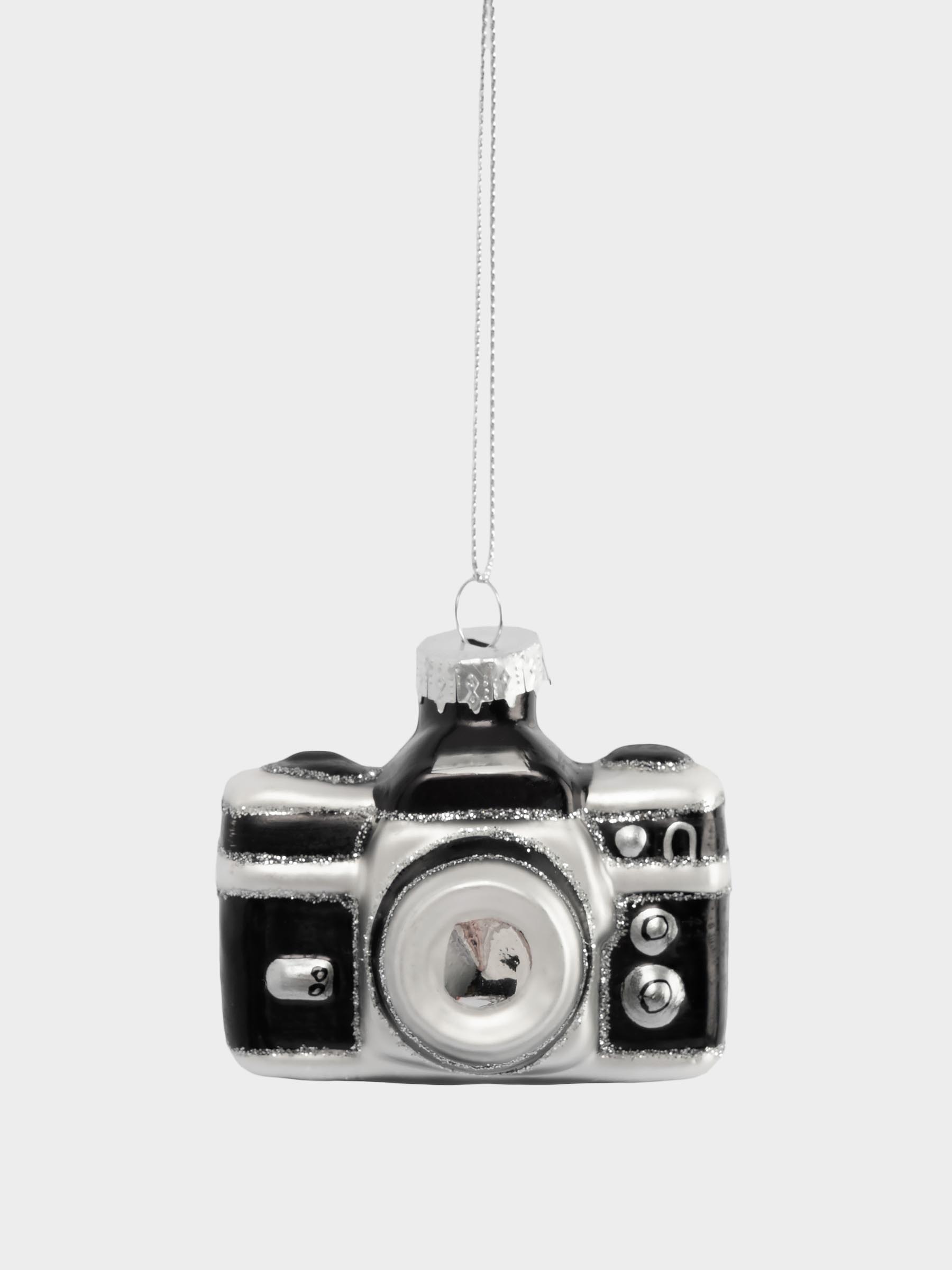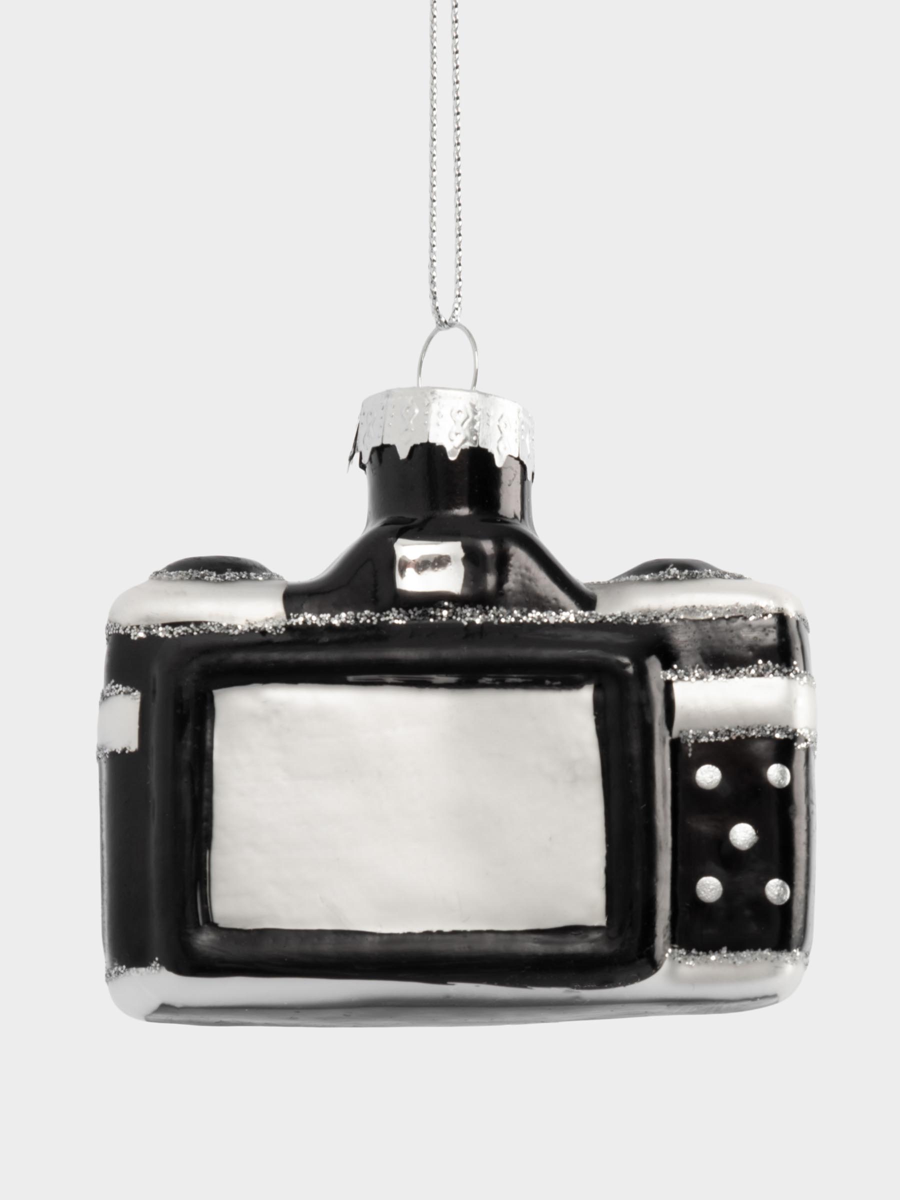 Игрушка елочная, 7х5 см, стекло, черно-белая, Фотоаппарат, New year