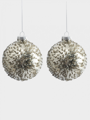 Игрушка елочная, 2 штуки. Размер: 8 см. Материал: стекло, блестки, бисер. Протирать мягкой сухой тканью. Беречь от механических повреждений. 413