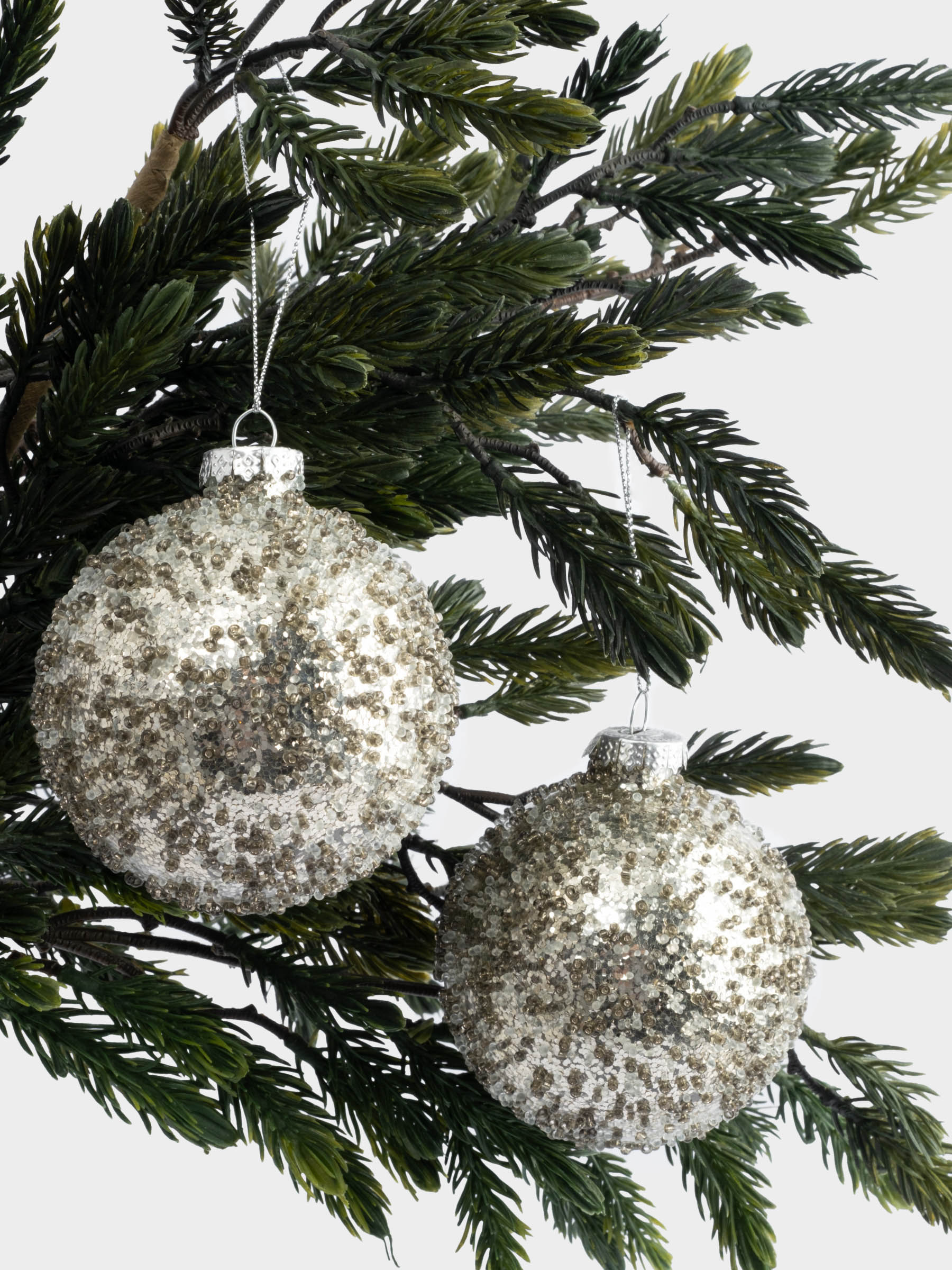 Игрушка елочная, 8 см, 2 шт, стекло, серебристая, Шар с изморозью, New year