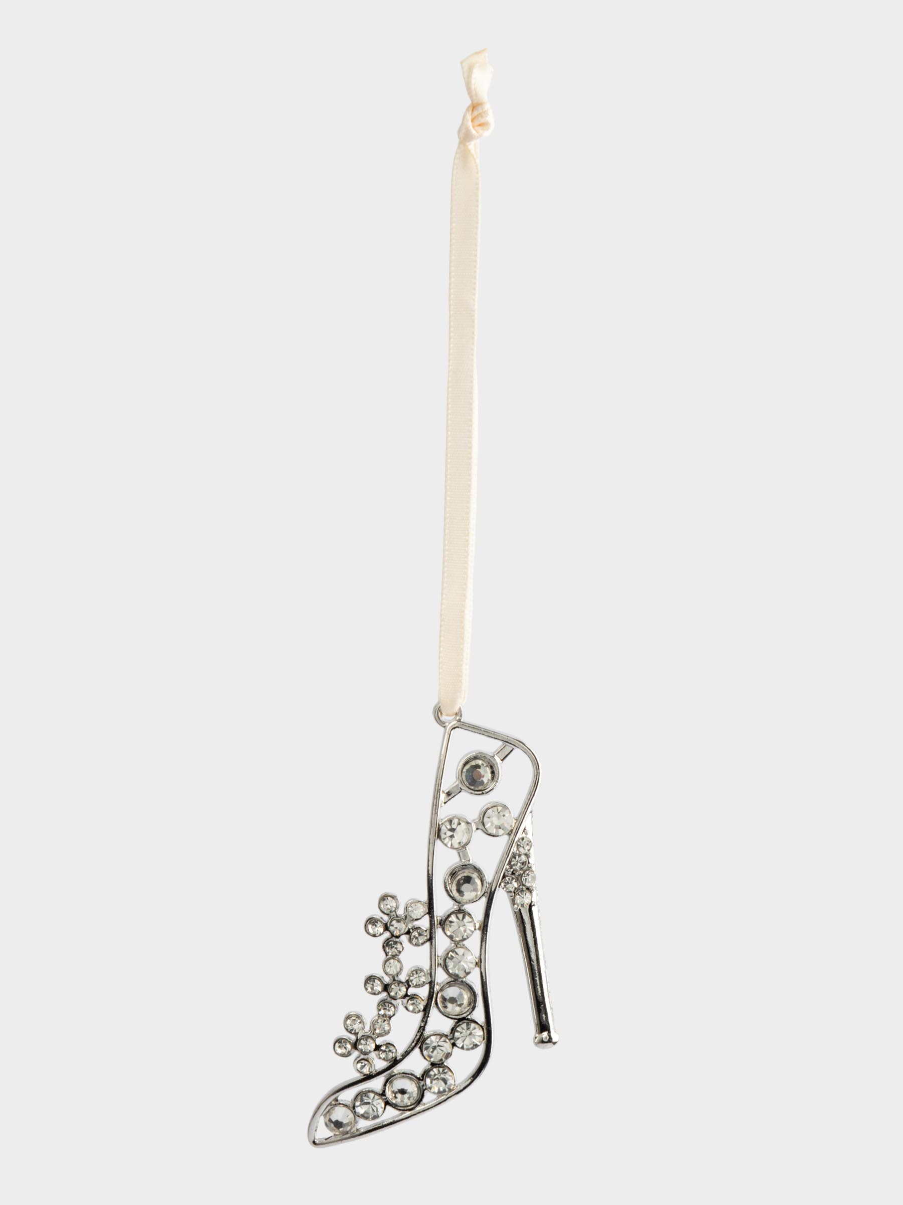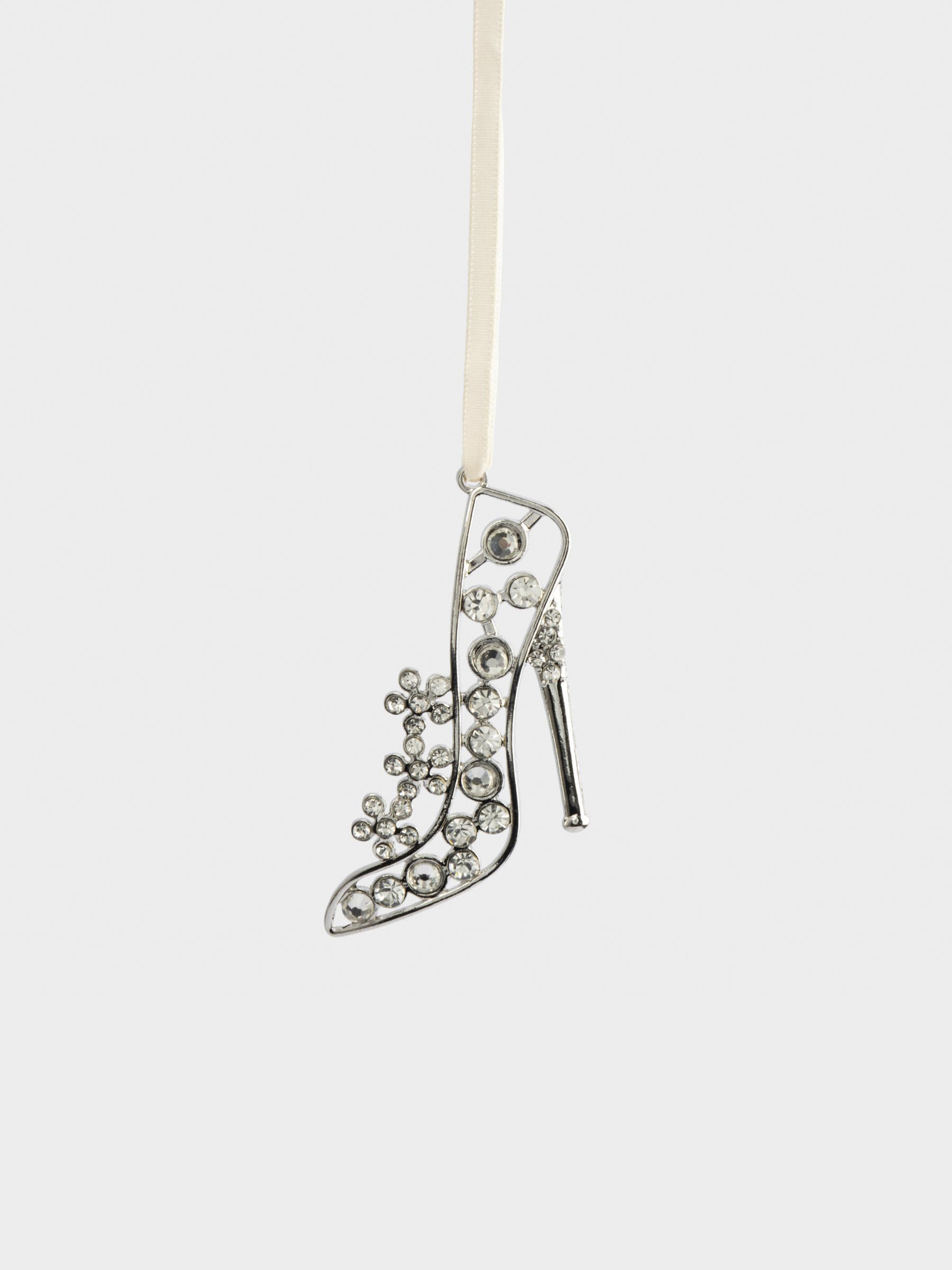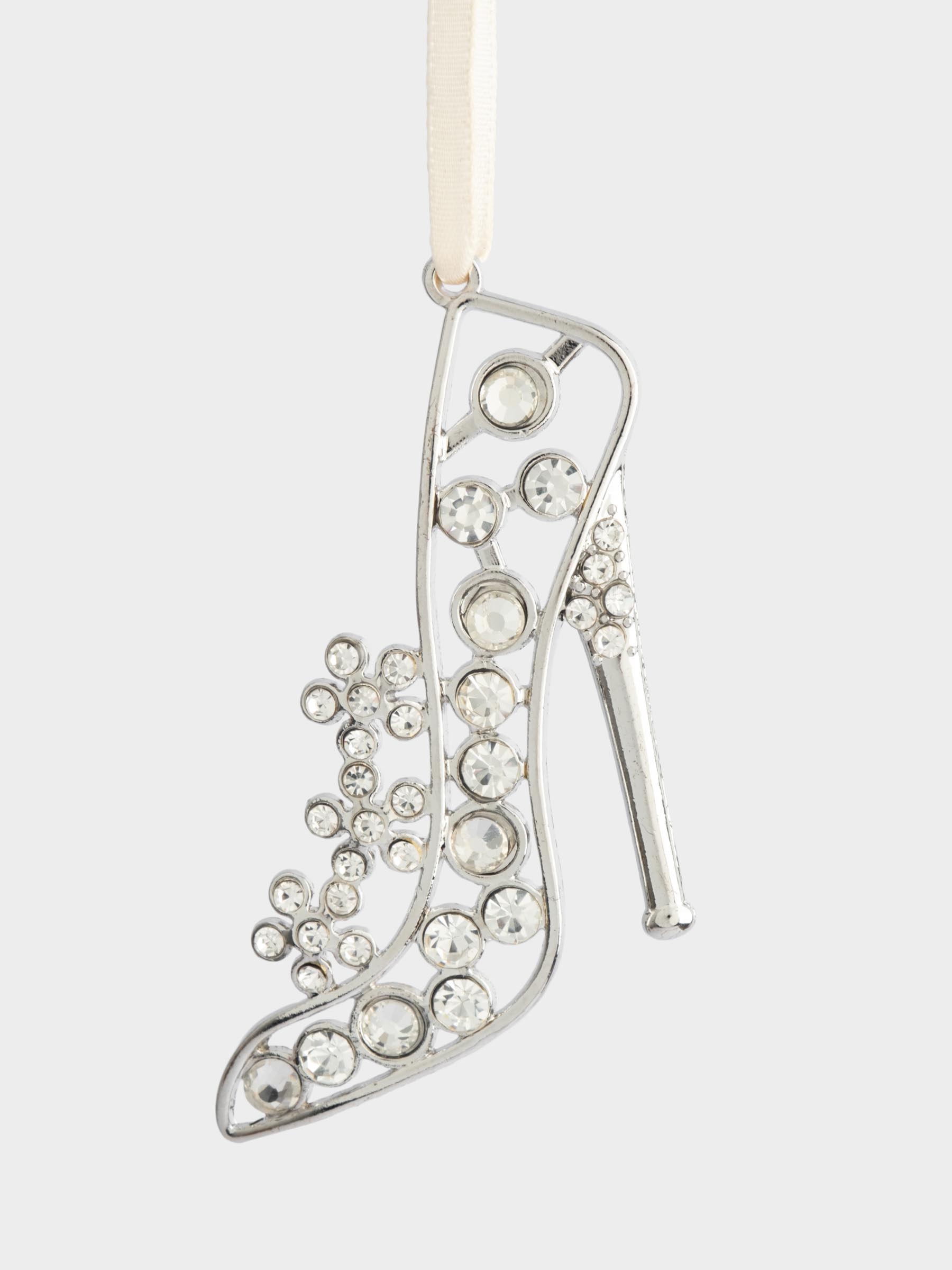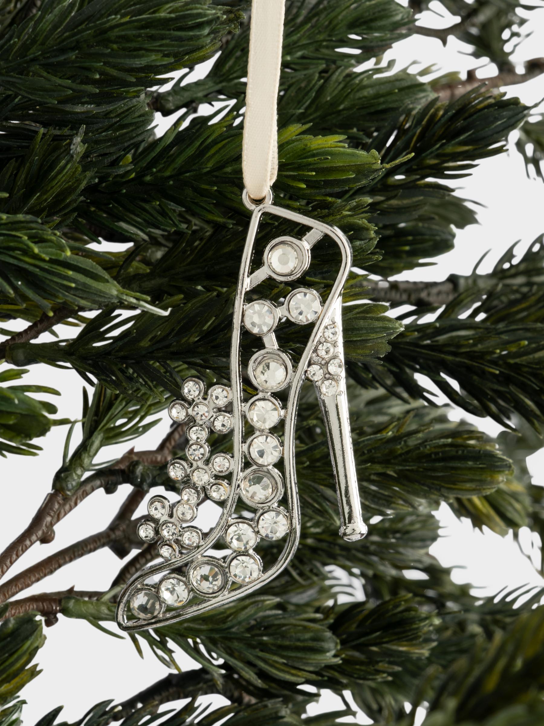 Игрушка елочная, 8 см, металл, серебристая, Туфелька со стразами, Event