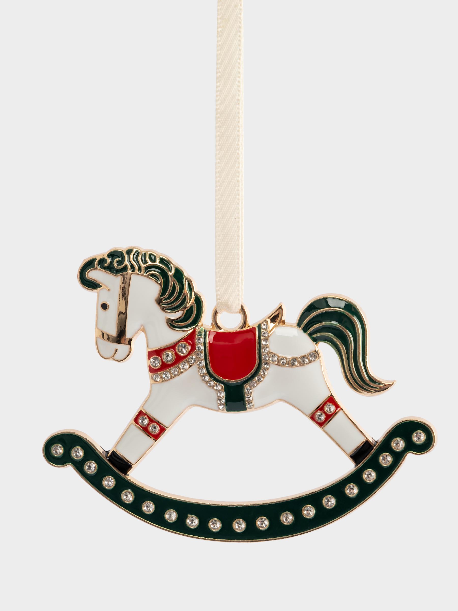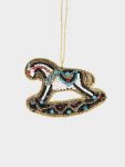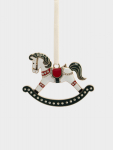 Игрушка елочная, 8 см, металл, зелено-золотистая, Лошадка-качалка, New year