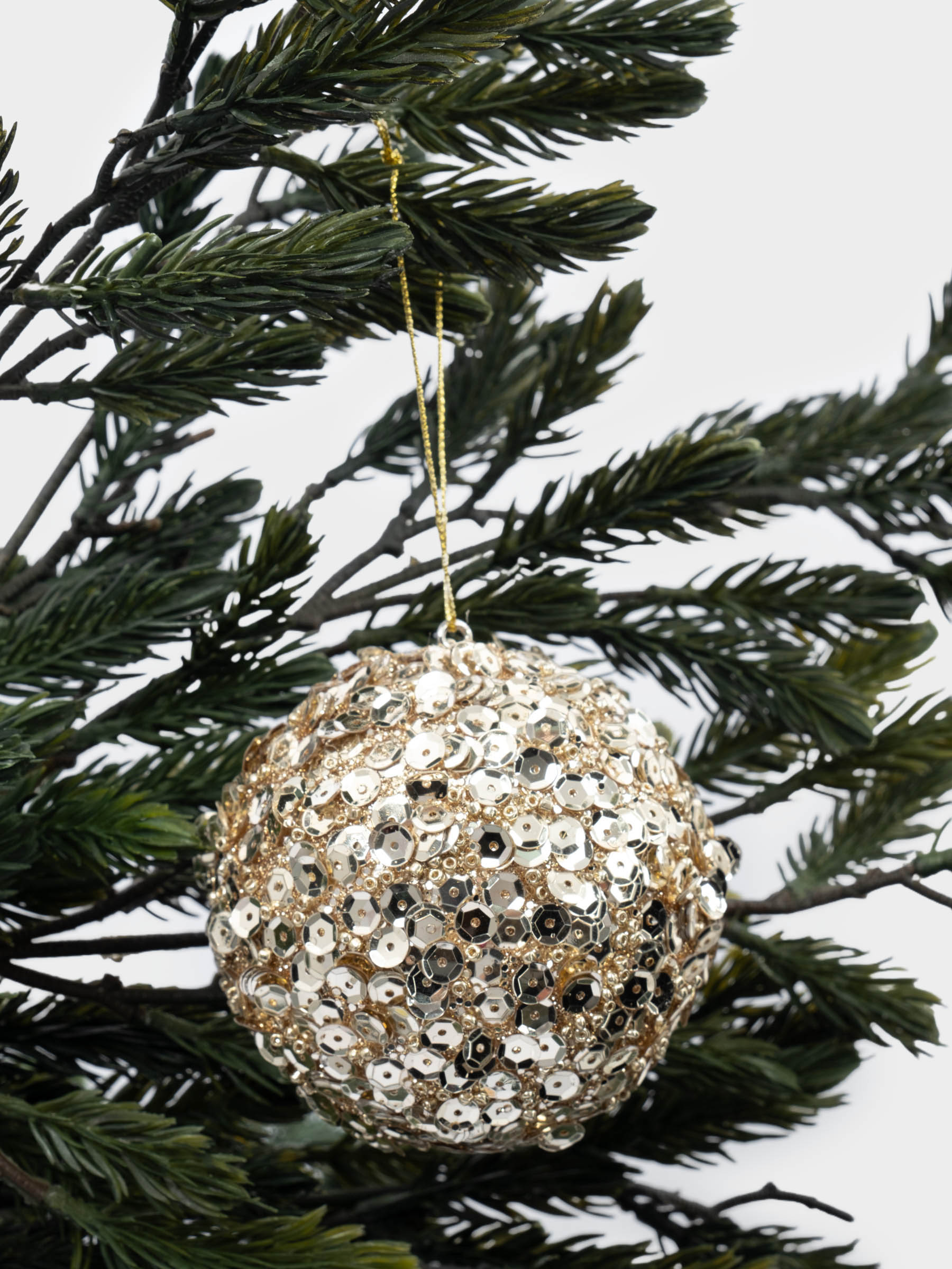 Игрушка елочная, 8 см, пластик, шампань, Шар с пайетками, New year