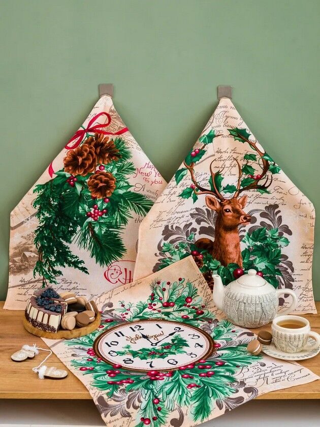 К-т полотенец "Чудесное время" 50*60 см. - 3 шт. рогожка хлопок 100%