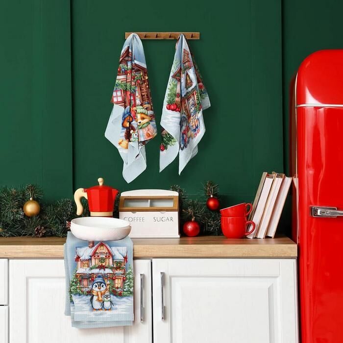 К-т полотенец "Любимые сказки Деда Мороза" 50*60 см. - 3 шт. вафля хлопок 100%