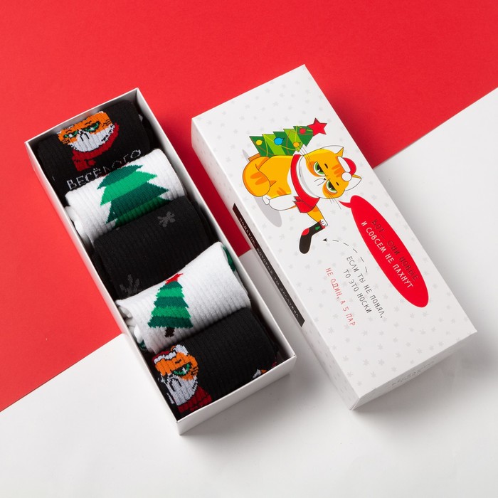 Праздничные носки с новогодним настроением в каждой паре. Создайте себе и близким праздничное настроение с этим набором ярких носков.