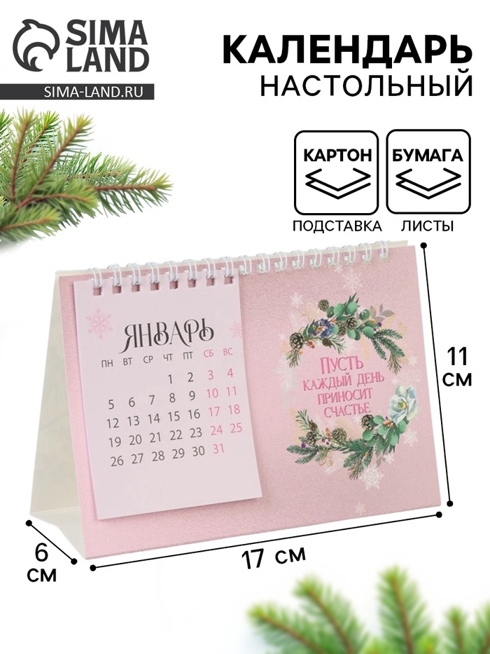 Календарь 2026 домик с перекидным блоком «Каждый год принесёт счастье»