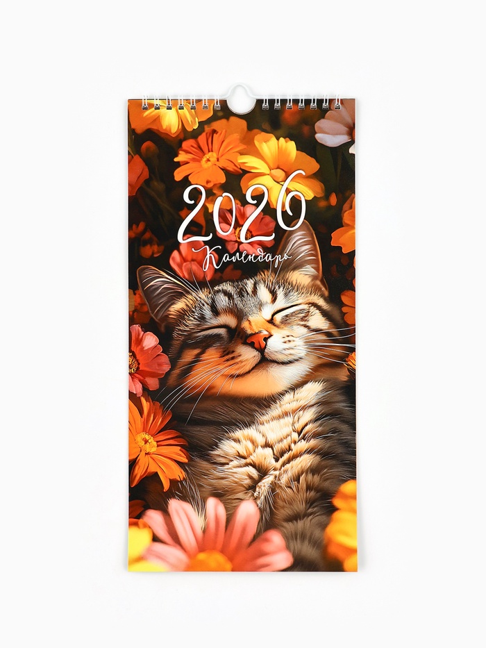 Календарь 2026 на ригеле «Кот в цветах» 16.5×34 см