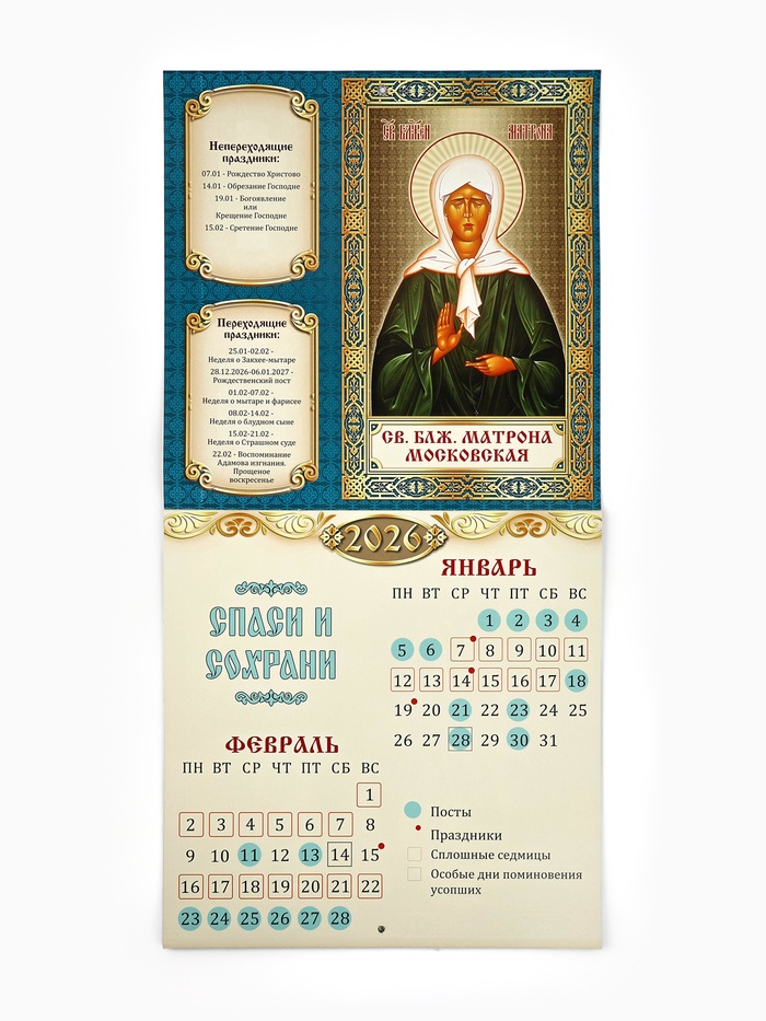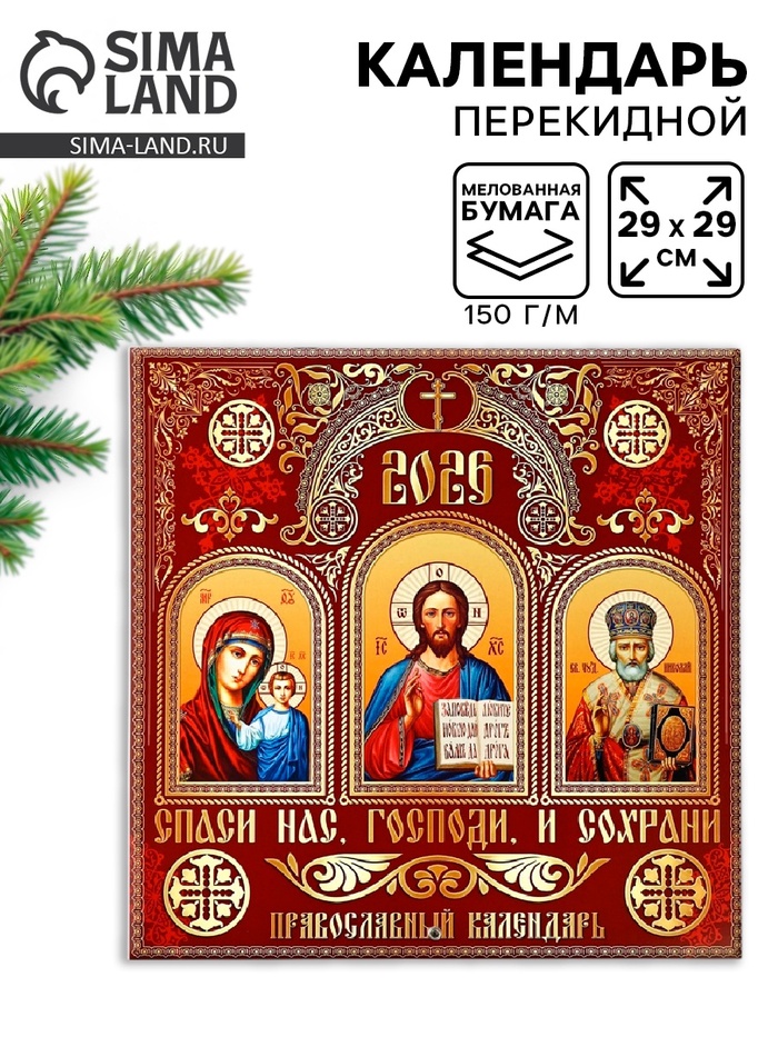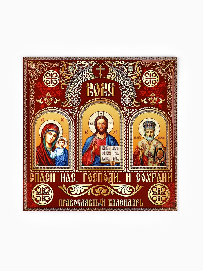 Календарь 2026 перекидной на скрепке 6 листов «Церковно-православный» 29×29 см