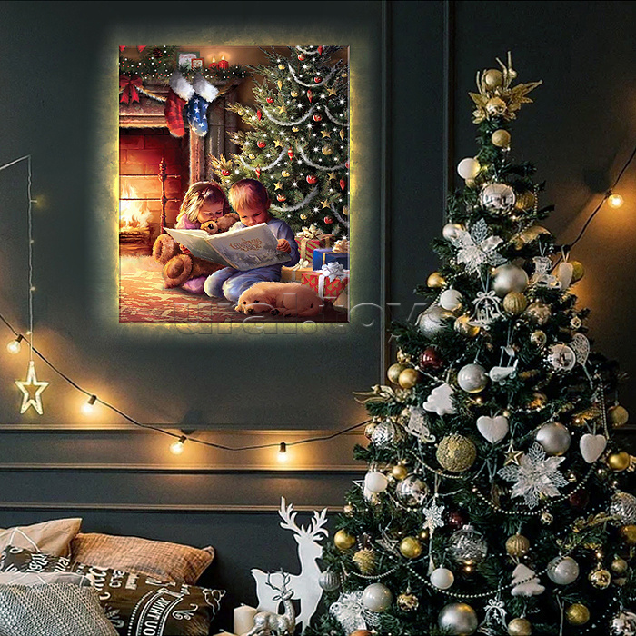 Картина по номерам 40х50 "Рождественская атмосфера" USB LED подсветка (30 цветов)