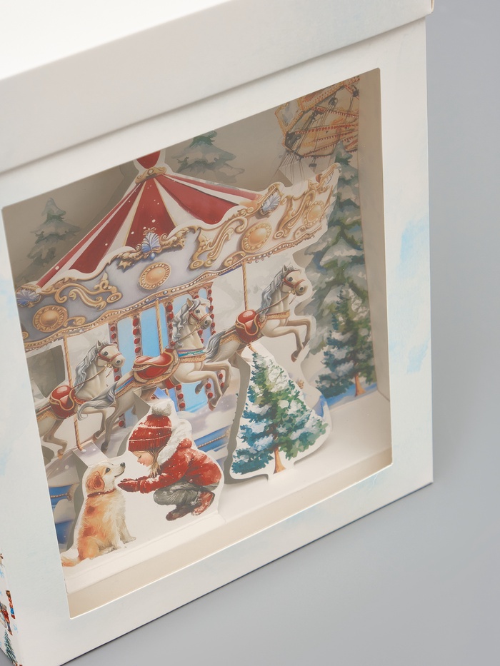 Коробка новогодняя складная с 3D эффектом «Лошадь 2026», карусель, 18×23×14 см