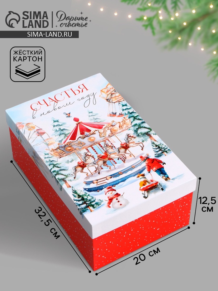 Коробка подарочная «Новый год 2026», карусель из лошадей, 32.5×20×12.5 см