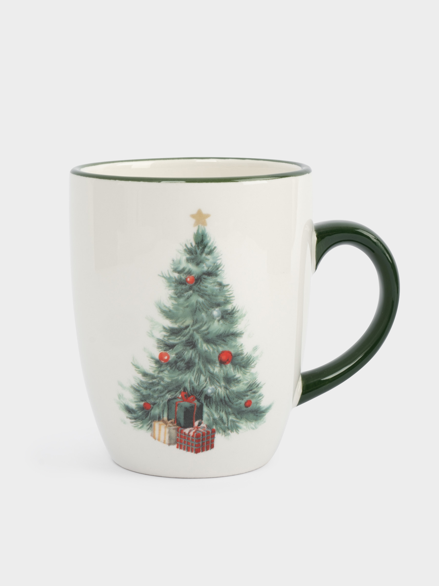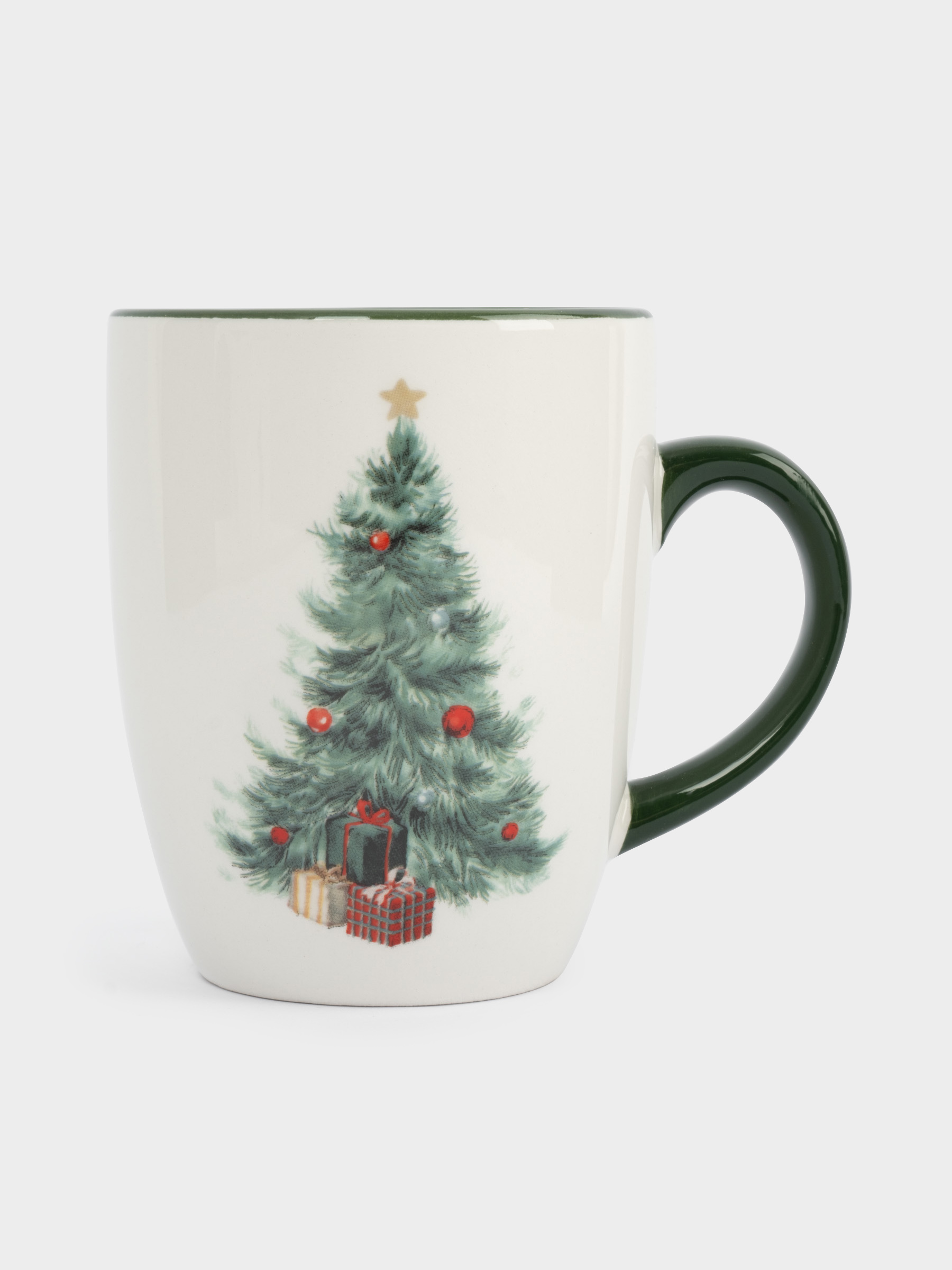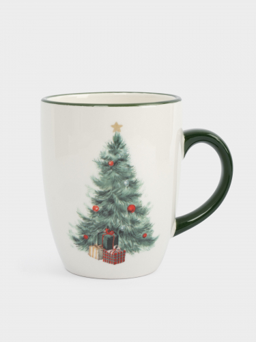 Кружка, 330 мл, керамика D, зеленая, Елка с подарками, Festival