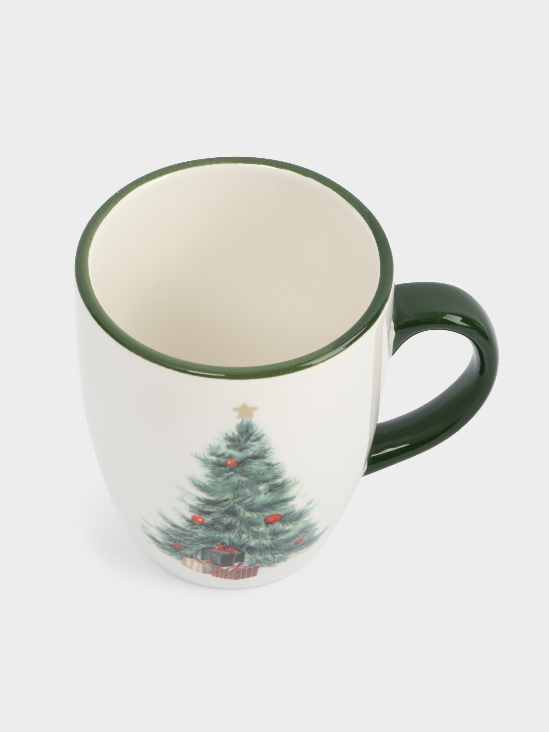 Кружка, 330 мл, керамика, зеленая, Елка с подарками, Festival