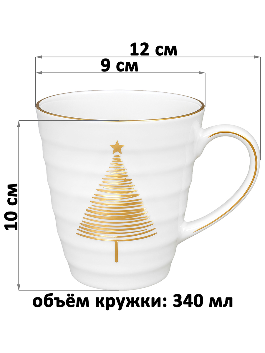 Кружка 340 мл 12*9*10 см "Золотая ёлочка", фарфор